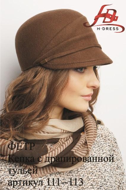 Красивая лаконичная фетровая кепка со складками по тулье.
