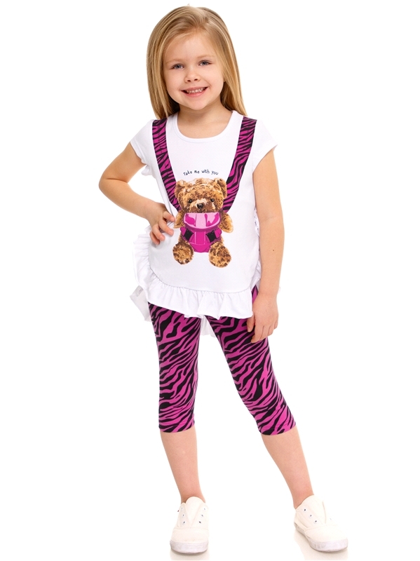 Состав: кулир с лайкрой / хлопок 92% + лайкра 8%. Комплект для девочки из туники и бридж выполнен из легкого хлопкового полотна с лайкрой. Туника с короткими рукавами, низ украшен оборкой, декорирован... Показать описаниеа дизайнерским принтом. Бриджи свободно-облегающего кроя, на эластичном поясе. Уход: только машинная стирка (руками не стирать!) при температуре 40 градусов, без предварительного замачивания. Изделия с печатью и декором перед стиркой необходимо вывернуть на изнаночную сторону.