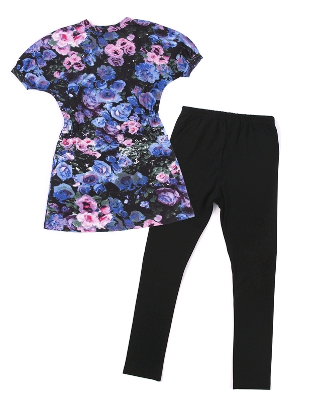 Состав: вискон / вискоза 95% + лайкра 5%. Стильный комплект, состоящий из платья и лосин, выполненный из хлопка. Отлично сидит и не сковывает движений. Платье с короткими рукавами, по линии талии вшит... Показать описаниеа узкая резинка для придания элегантного силуэта, декорировано дизайнерской цветочной набивкой. Однотонные лосины имеют эластичный пояс. Отличный вариант для юной модницы! Рекомендуется машинная стирка при 40 градусах без предварительного замачивания.