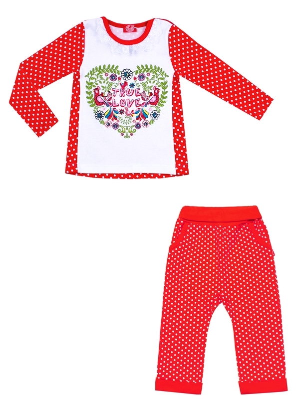 Состав: футер / хлопок 95% + лайкра 5%. Уютный комплект для девочки из лонгслива и ползунков выполнен из теплого хлопкового полотна с лайкрой. Лонгслив с длинными рукавами, украшен дизайнерским нового... Показать описаниедним принтом. Ползунки на удобном эластичном поясе и с манжетами. Отличный вариант для зимних праздников! Уход: только машинная стирка (руками не стирать!) при температуре 40 градусов, без предварительного замачивания. Изделия с печатью и декором перед стиркой необходимо вывернуть на изнаночную сторону.
