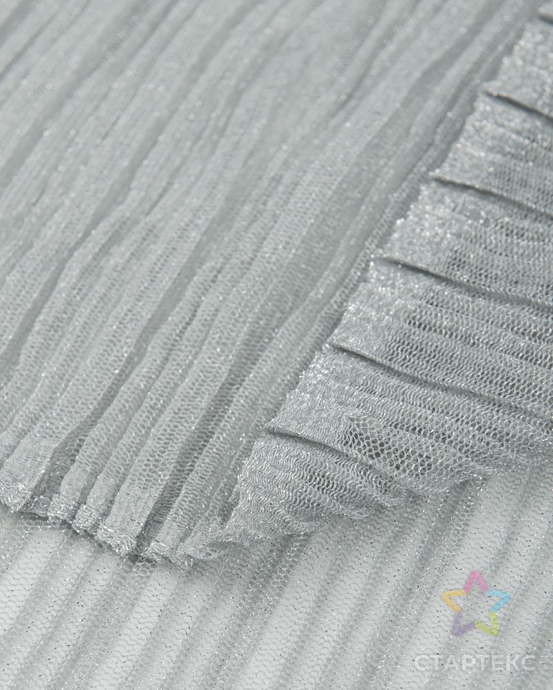 Тонкий полупрозрачный плиссированный материал с сетчатой структурой. Мягкий, эластичный и приятный на ощупь, слегка рельефный, с легким металлическим блеском. Элементы рисунка (плиссировка) повторяютс... Показать описаниея через 2 см. Применяется для пошива юбок, платьев, а также для декорирования деталей одежды, незаменима для вечернего наряда. Состав 95% п/э, 5% металлизированная нить. Плотность 170 гр/м.пог. Ширина 160 см.