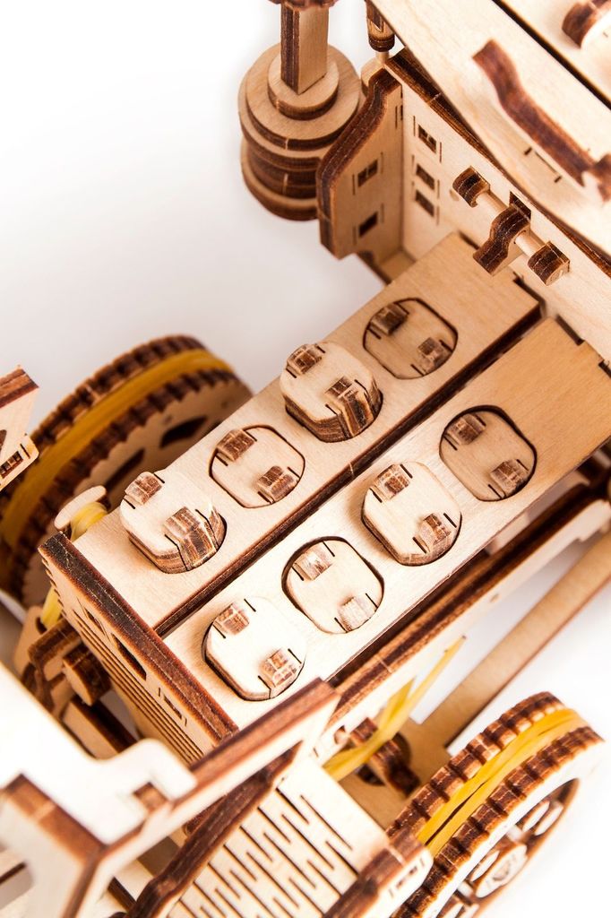ССЫЛКА НА ПОДРОБНОЕ ОПИСАНИЕ И ДОПОЛНИТЕЛЬНЫЕ ФОТО Новая модель Тягач превосходит по качеству и сложности все прежние модели. Это мощная машина, которая имеет переключатель скоростей. Модель является воплощением усовершенствованного уровня сложности для настоящих ценителей. Через дизайнерски прорезанные узоры вы можете увидеть реалистично движущиеся механизмы внутри конструктора. Подняв капот автомобиля оцените работу 4-х тактного двигателя с коленным валом. Внутренние детали конструктора спроектированы с оглядкой на настоящие, что не может не подкупить знатоков. Это однозначно поразит автомобилистов и принесет удовольствие в процессе сборки и по его завершению. Собрав этот конструктор, вы ощутите гордость и наслаждение от выполненной работы. Система сборки проста и надежна, не требует специальных навыков. После вы сможете смело назвать себя инженером, архитектором и строителем. Тягач от Wood Trick является отличным подарком мужчине любого возраста. В собранном виде он будет дизайнерским украшением вашего интерьера. Заведите тягач с помощью специально встроенного механизма, и вы увидите с какой легкостью он преодолеет значительное расстояние по полу вашей гостиной.