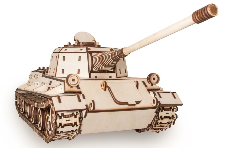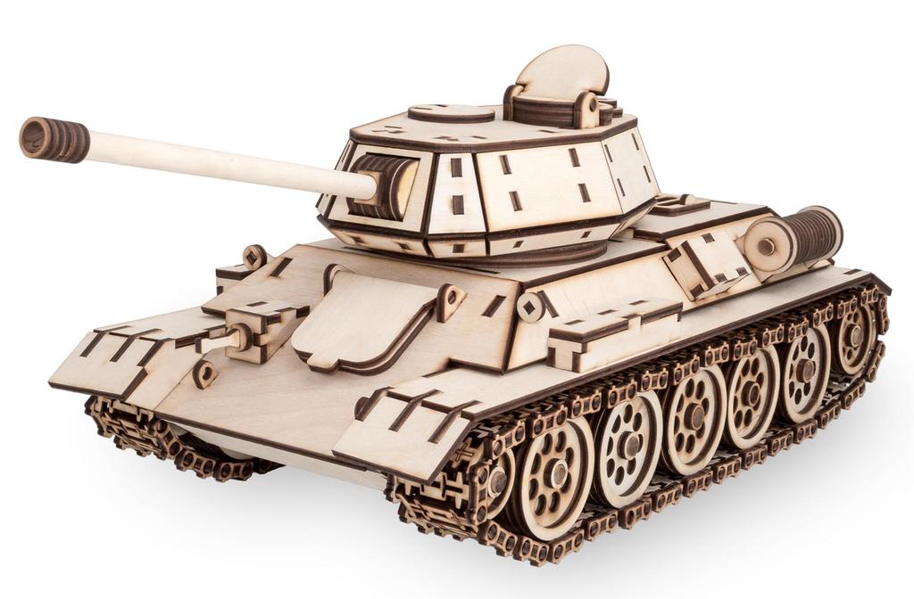 ССЫЛКА НА ПОДРОБНОЕ ОПИСАНИЕ И ДОПОЛНИТЕЛЬНЫЕ ФОТО Танк Т-34 – участник всех сражений ВОВ, герой кинофильмов и онлайн-игр, включая World of Tanks. Моделистам и фанатам WoT, особенно тем, кто предпочитает советскую ветку развития, Eco Wood Art презентует 3D-модель тридцатьчетверки. В коробке 600 деталей для конструктора, который вживую выглядит куда убедительнее, чем фото на упаковке. Танк получился внушительного размера и веса. При длине в 49 см и массе более 1 кг на ладошке его не удержать. Команда Eco Wood Art остановилась на модификации Т-34-76 – с шестигранной башней и классической компоновкой. Реалистичность – важное, но не единственное достоинство игрушки для взрослых. Вложив в работу 3 месяца, мастера создали интерактивный 3D-пазл! Все, что может двигаться и вращаться, в этой механической модели работает. Башня поворачивается, люки открываются, пушка наводится, гусеничные ленты хрустят траками, проходя по колесам и опорным каткам. КупитьTankt-34 EWA из фанеры стоит ради его красоты и экологичности. Поскольку применяется только натуральная белорусская древесина, можно не сомневаться, что изделие безопасно для здоровья человека. К тому же, в отличие от заурядных макетов, танк из дерева можно собрать своими руками, получив удовольствие и от медитативного процесса сборки, и от результата.
