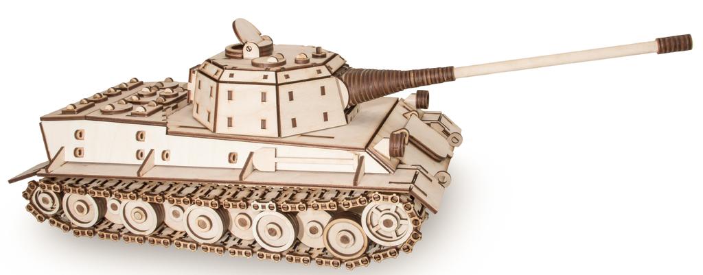 ССЫЛКА НА ПОДРОБНОЕ ОПИСАНИЕ И ДОПОЛНИТЕЛЬНЫЕ ФОТО Сборная модель из дерева Eco Wood Art Танк Лев большого размера. Собирается с помощью клея и огромного желания обладателя такого шикарного набора. Модель максимально приближена к оригиналу, все детали выполнены из березовой фанеры, а аромат древесины не оставит вас равнодушными. Размер модели в собранном виде: 620*220*180мм. Размер упаковки: 374*292*56мм Количество деталей: 679 Историческая справка: Panzerkampfwagen VII «L?we» (нем. L?we — Лев) — проект немецкого сверхтяжёлого танка, разработанный в 1941—1942 году фирмой Krupp. От проекта отказались в пользу «Мауса». Прототипа изготовлено не было — имеются лишь различные недоработанные чертежи, также был создан макет из дерева. В одном из вариантов танка немецкие конструкторы прорабатывали кормовое расположение башни, что было новым решением компоновки танков. Первоначально танк имел индекс VK 7001 (K) или «Tiger-Maus». В марте индекс проекта был изменён с VK 7001 (K) на VK 7201 (K). Название Panzerkampfwagen VII «L?we» проект получил либо в начале 1942 года или же в апреле 1942 года. Танк Лев может считаться одним из примеров «Чудо-оружия». Применение этого танка могло дать выигрыш в тактических операциях благодаря их малой уязвимости и большой огневой мощи, позволявших уверенно поражать вражеские танки[8], однако на боевой эффективности существенно сказалась бы малоподвижность танка. При рассмотрении плюсов танка стоит обратить внимание на два момента. Во-первых: до конца войны в Третьем Рейхе так и не было разработано 150-мм орудие, которое планировали установить на «Лев». Во-вторых: немецкий танковый теоретик Гейнц фон Гудериан в книге «Воспоминания солдата», упоминая визит танковых конструкторов и офицеров Управления вооружённых сухопутных сил в ноябре 1941 года для ознакомления с трофейным Т-34, говорит о снижении качества немецкой стали из-за отсутствия необходимого количества легирующих элементов Боевая масса – 80т Экипаж – 6 человек Калибр пушки – 105мм Скорость по шоссе -27км/ч
