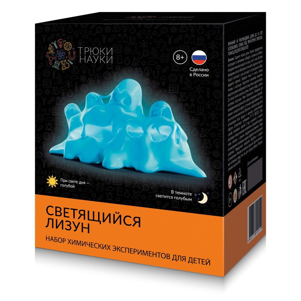 ССЫЛКА НА ПОДРОБНОЕ ОПИСАНИЕ И ДОПОЛНИТЕЛЬНЫЕ ФОТО Набор химических экспериментов для детей: "Светящийся лизун" при свете дня -голубой, в темноте светится голубым. Реагентов хватает на несколько исполнений.