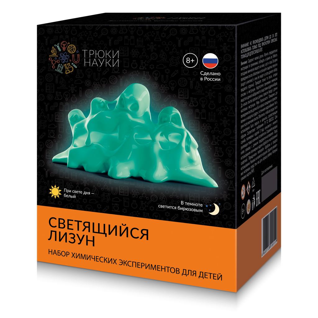 ССЫЛКА НА ПОДРОБНОЕ ОПИСАНИЕ И ДОПОЛНИТЕЛЬНЫЕ ФОТО Набор химических экспериментов для детей: "Светящийся лизун" при свете дня - белый , в темноте светится бирюзовым. Реагентов хватает на несколько исполнений.