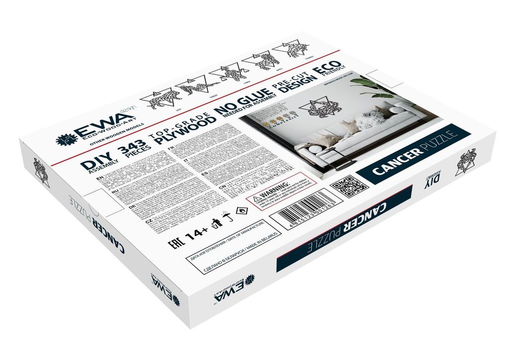 ССЫЛКА НА ПОДРОБНОЕ ОПИСАНИЕ И ДОПОЛНИТЕЛЬНЫЕ ФОТО Домашний декор, в частности панно на стену, очень популярны. Компания Eco Wood Art представляет совершенно новую и экологичную серию Design "Знаки Зодиака". Декор выполнен из дерева (фанеры) окрашенный в черную краску. Панно собирается из деталей, который специально вырезаны на лазерном станке. Каждый набор это несколько десятков деталей, с помощью которых вы сможете собрать этот деревянный 3D пазл за пару часов, а радовать он вас будет долгие годы. Вариант размещения на стене вы можете наблюдать на фотографии. Каждая собранная модель получится у вас большого размера, больше 70 см в ширину и также более 70 см высоту. Толщина составит всего 7 мм с учетом фанеры 4 мм и креплений. Собранная модель имеет стильный дизайн и будет отлично смотреться в домашнем и офисном интерьере. Наши модели также приятно дарить в фирменной цветной упаковке. Интерьерный декор из дерева "Рак". Размер в собранном виде: 743*720*7 Размер упаковки: 242*186*34 Кол-во деталей: 343 Сборка: Без клея