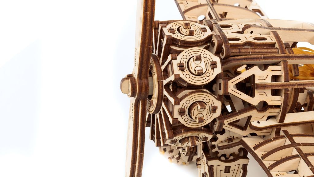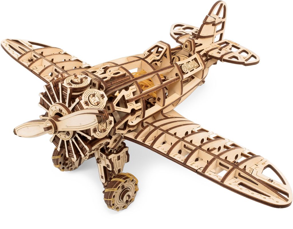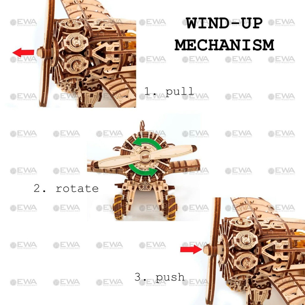 ССЫЛКА НА ПОДРОБНОЕ ОПИСАНИЕ И ДОПОЛНИТЕЛЬНЫЕ ФОТО Сборная модель Заводной Самолет Eco Wood Art - механический деревянный конструктор;3D;двигателем на резинке. Прекрасная сборная модель, обладает уникальным дизайном, который понравится всем любителям авиации. Деревянная модель собирается без помощи клея, с ней справится и ребенок. Такой конструктор можно смело дарить вашим друзьям, коллегам и родным. Особенности модели: - заводной двигатель на резиномоторе - рабочие закрылки спереди и сзади - открытая кабина - подвижные рычаги в кабине - размер модели: 42x29x15 см - количество деталей: 269. - сборка без клея - подарочная упаковка