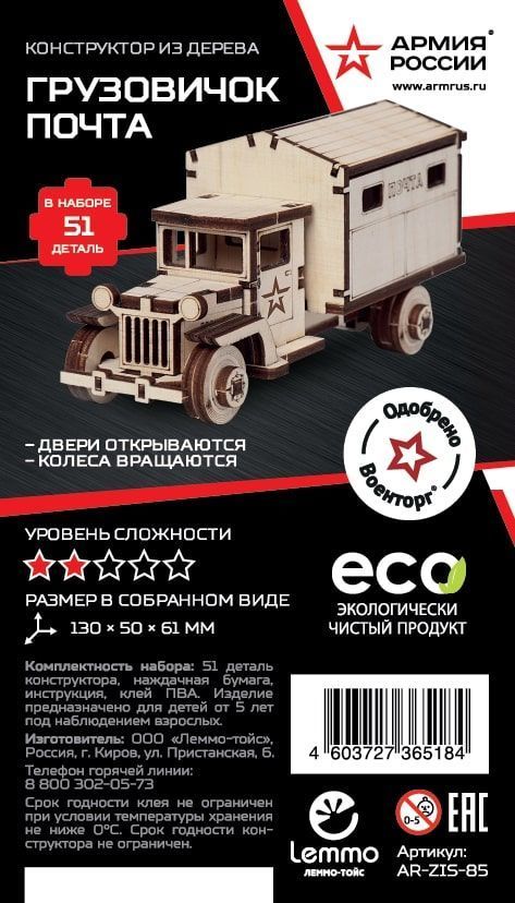 ***Конструктор деревянный Армия России Грузовик ПочтаВопросы по товару