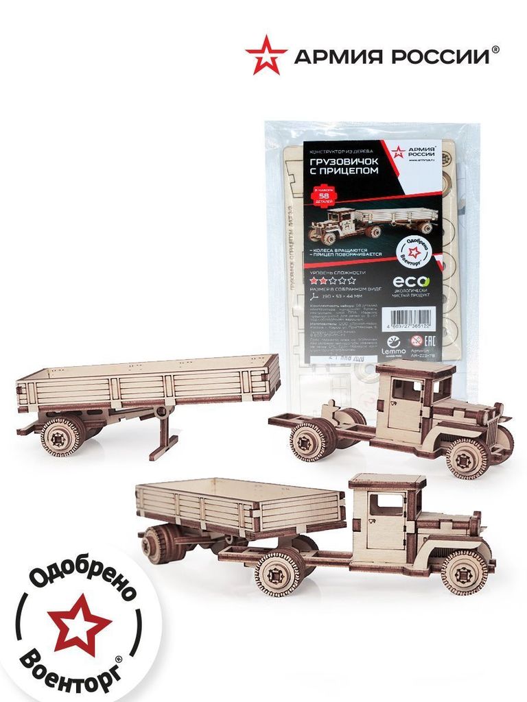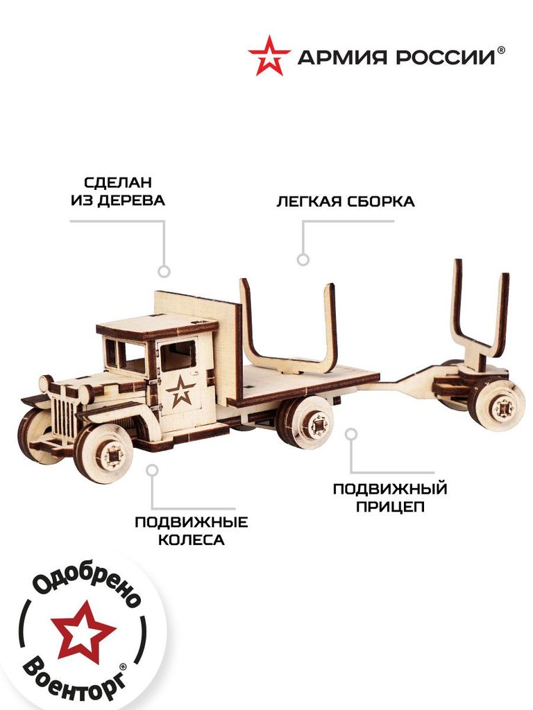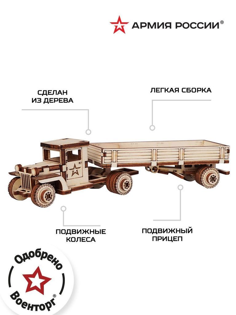 ***Конструктор деревянный Армия России Грузовик с прицепомВопросы по товару