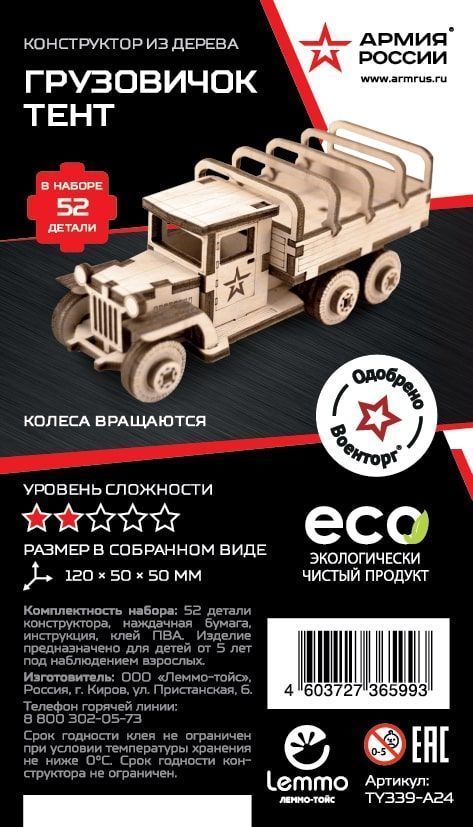 ***Конструктор деревянный Армия России Грузовик ТентВопросы по товару
