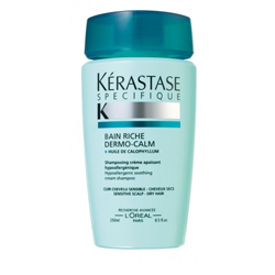 Спесифик Байн Рич Дермо-Кальм - это шампунь, предназначенный для ухода за чувствительной кожей головы и сухими волосами. Обладает успокаивающим действием, снимает ощущение дискомфорта, устраняет зуд и... Показать описание раздражение. Riche Dermo-Calm от Kerastase деликатно ухаживает за сухими волосами, увлажняя их и питая. Регулярное применение шампуня помогает уменьшить процент ломких волос, справиться с их выпадением. Волосы становятся потрясающе красивыми, к ним возвращается природный блеск и мягкость. Расчесывание волос намного облегчается. Активные вещества в составе шампуня выравнивают структуру волос, придавая им гладкость и шелковистость. Порядок применения: Увлажните волосы, нанесите на них шампунь, втирая его в кожу головы массирующими движениями. Через несколько минут смойте. Для закрепления эффекта на вымытые волосы рекомендуется нанести бальзам. Объём: 250 мл