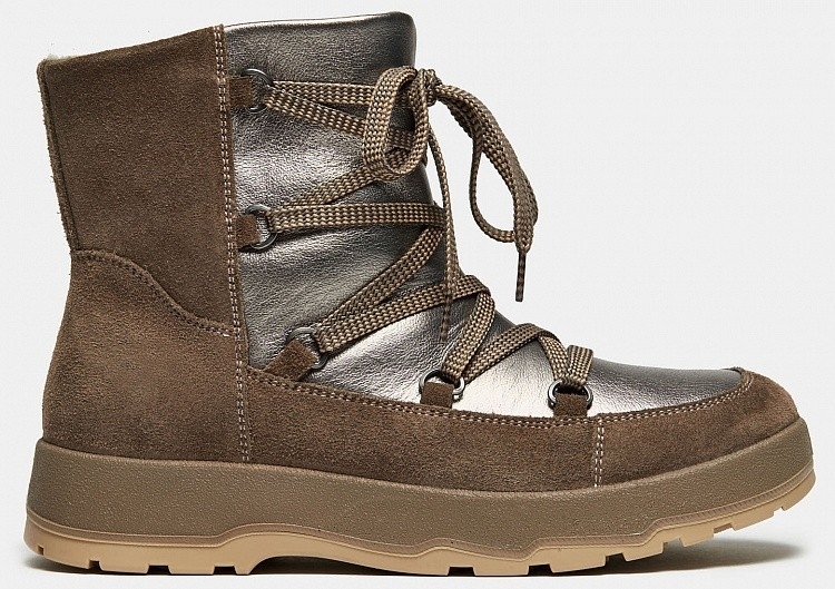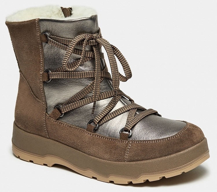 Больше картинок (информации) и таблица размеров на странице. Зимние женские ботинки ANITA с молнией на внешней стороне и высокой подошвой отличаются практичностью и стильным дизайном. Кроме молнии ботинки дополнительно оснащены высокой шнуровкой для регулирования объема голенища. Рифленая массивная подошва из ТЭП не скользит и защищает ноги от сырости. Подклад и стелька из меха качественно сохраняют тепло внутри, при этом пропуская воздух. А модный оттенок позволит сочетать эти ботинки с современной одеждой. Внутренний материал: Мех (шерсть). Материал верха: Спилок. Материал подклада: Мех (шерсть). Материал подошвы: ТЭП. Пол: женский. Сезон: зима. Верх: спилок. Подошва: ТЭП. Материал стельки: Мех (Шерсть). Высота каблука: без каблука. Высота голенища: 16 см. Коллекция: Осень-Зима 2021-22. Подклад: мех (шерсть). Линейка: Classic. Полнота: 5 (Стандарт). Крепление подошвы: Клеевой