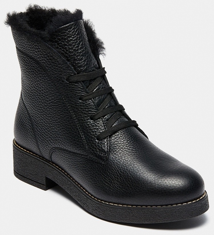 Больше картинок (информации) и таблица размеров на странице. Черные ботинки фасона ALFA из женской коллекции станут отличным выбором этой зимой. Верх выполнен из натуральной кожи, теплый мех внутри сохранит тепло и комфорт. Ботинки смогут дополнить классический образ и подходят для повседневной носки. Стильная пара для Вашего гардероба! Внутренний материал: Мех натуральный. Материал верха: Натуральная кожа. Материал подклада: Мех натуральный. Материал подошвы: ТЭП, Посмотреть видео о товареПол: женский. Сезон: зима. Верх: натуральная кожа. Подошва: ТЭП. Материал стельки: мех. Высота каблука: 4 см. Коллекция: Осень-Зима 2021-22. Подклад: мех. Линейка: Modern. Полнота: 5 (Стандарт). Крепление подошвы: Клеевой