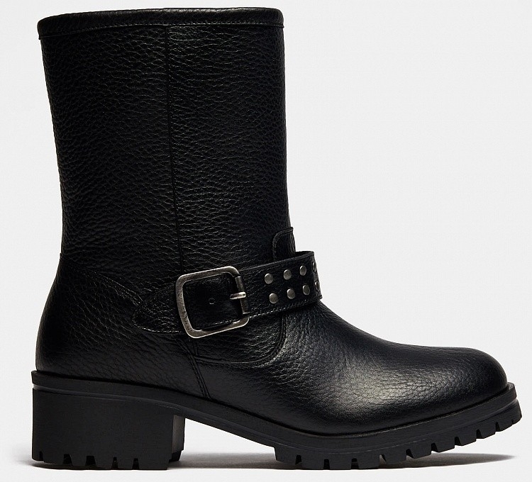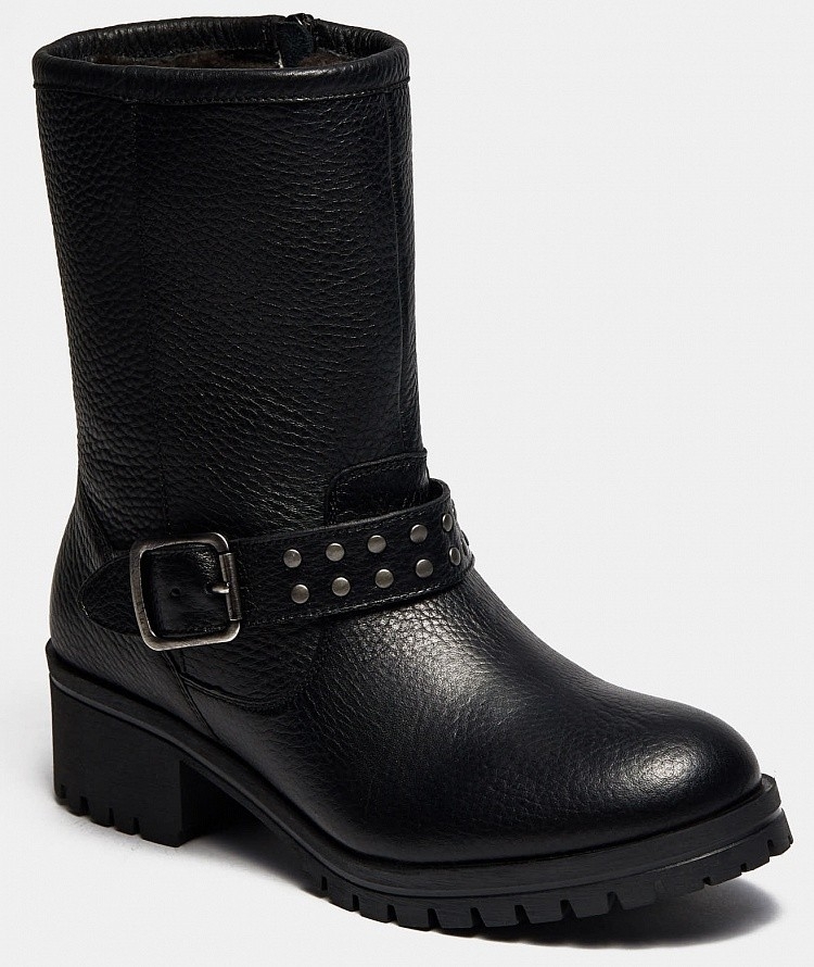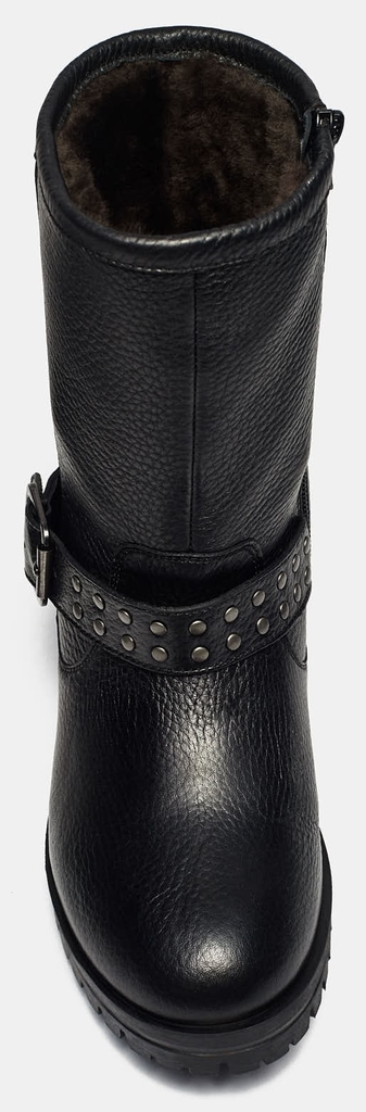 Больше картинок (информации) и таблица размеров на странице. Ультрамодные женские полусапоги GVEN в стиле "милитари" придутся по вкусу смелым и решительным девушкам. Черная кожа в сочетании с ярковыраженным протектором сделают Ваш образ заметным. Ремешок с заклепками, опоясывающий щиколотку, добавит выразительности. Удобная колодка, устойчивый широкий каблук и натуральный мех внутри станут залогом комфорта в течение всего дня. Внутренний материал: Мех натуральный. Материал верха: Натуральная кожа. Материал подклада: Мех натуральный. Материал подошвы: ТЭП. Пол: женский. Сезон: зима. Верх: натуральная кожа. Подошва: ТЭП. Материал стельки: мех. Высота каблука: 4,5 см. Высота голенища: 19 см,Объем голенища: 34 см. Коллекция: Осень-Зима 2021-22. Подклад: мех. Линейка: Modern. Полнота: 5 (Стандарт). Крепление подошвы: Клеевой