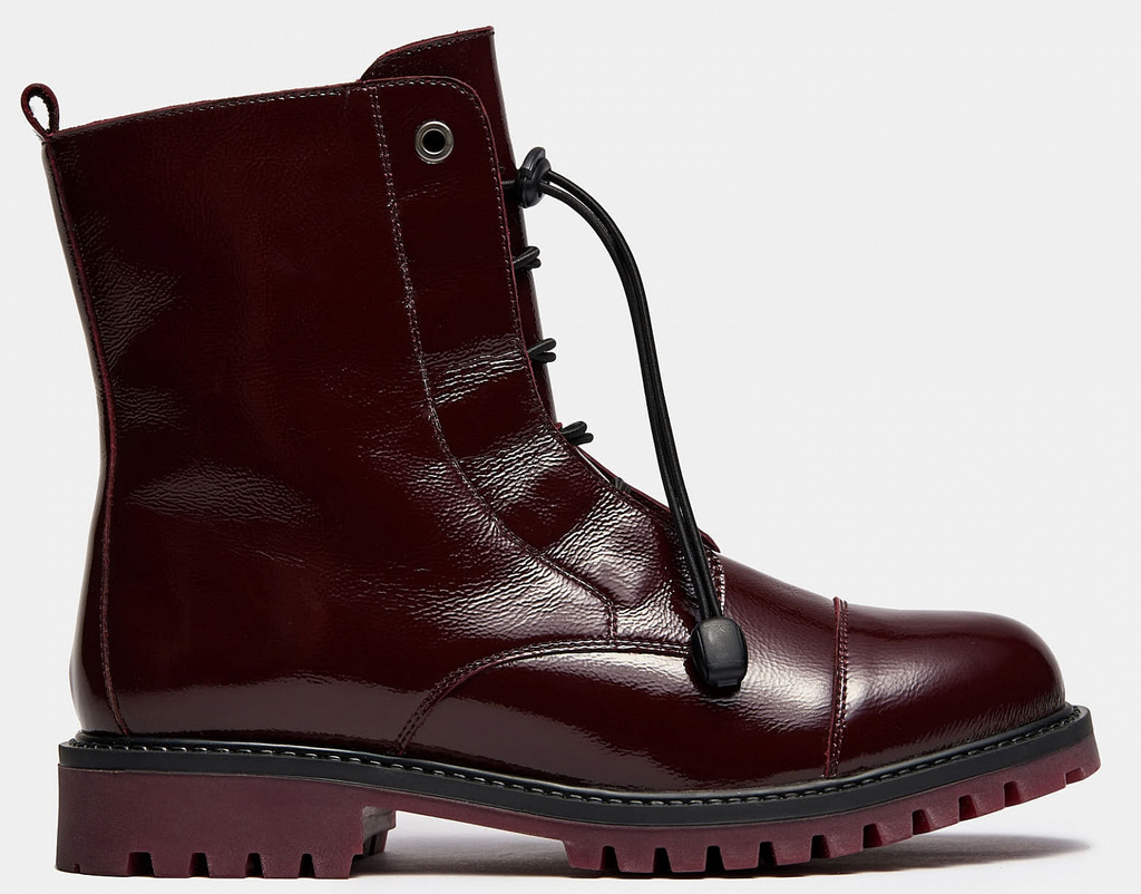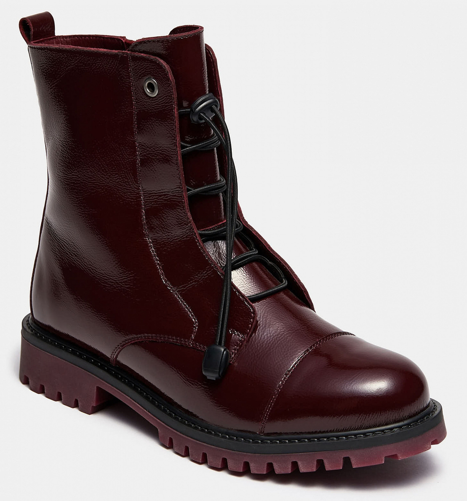 Больше картинок (информации) и таблица размеров на странице. Женские ботинки фасона ASPEN в глубоком бордовом цвете приятно удивят современных модниц. Модель имеет необычную шнуровку и нескользящую подошву с глубоким протектором. Ботинки изготовлены из лаковой кожи, хорошо сидят на ноге и прекрасно сочетаются с повседневным стилем. Внутренний материал: Мех натуральный. Материал верха: Наплак. Материал подклада: Мех натуральный. Материал подошвы: ТЭП, Посмотреть видео о товареПол: женский. Сезон: зима. Верх: наплак. Подошва: ТЭП. Материал стельки: мех. Высота каблука: 3,5 см. Коллекция: Прошлые коллекции. Подклад: мех. Линейка: Weekend. Полнота: 5 (Стандарт). Крепление подошвы: Клеевой