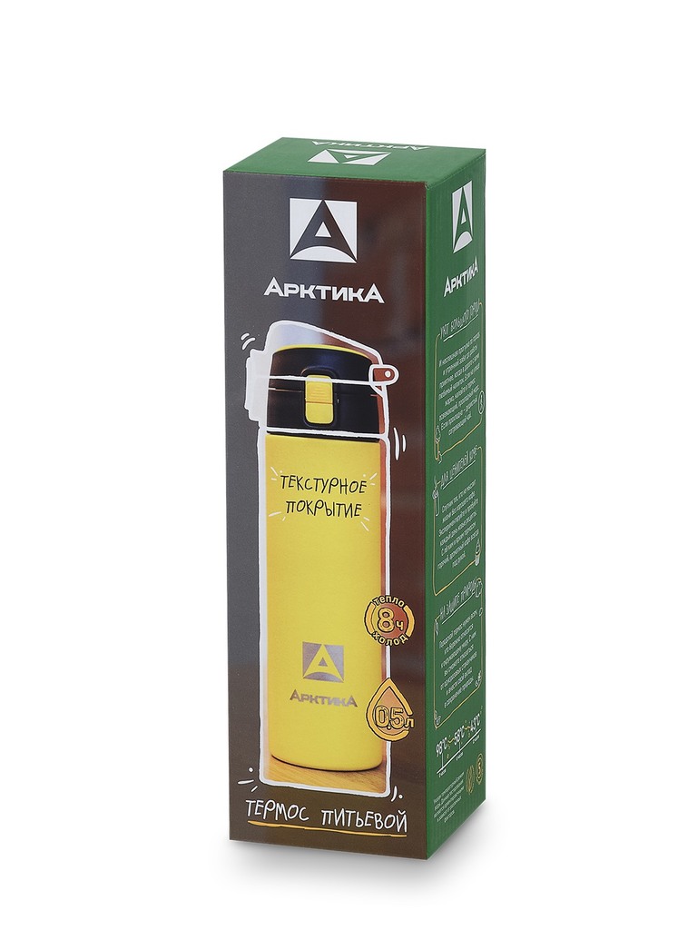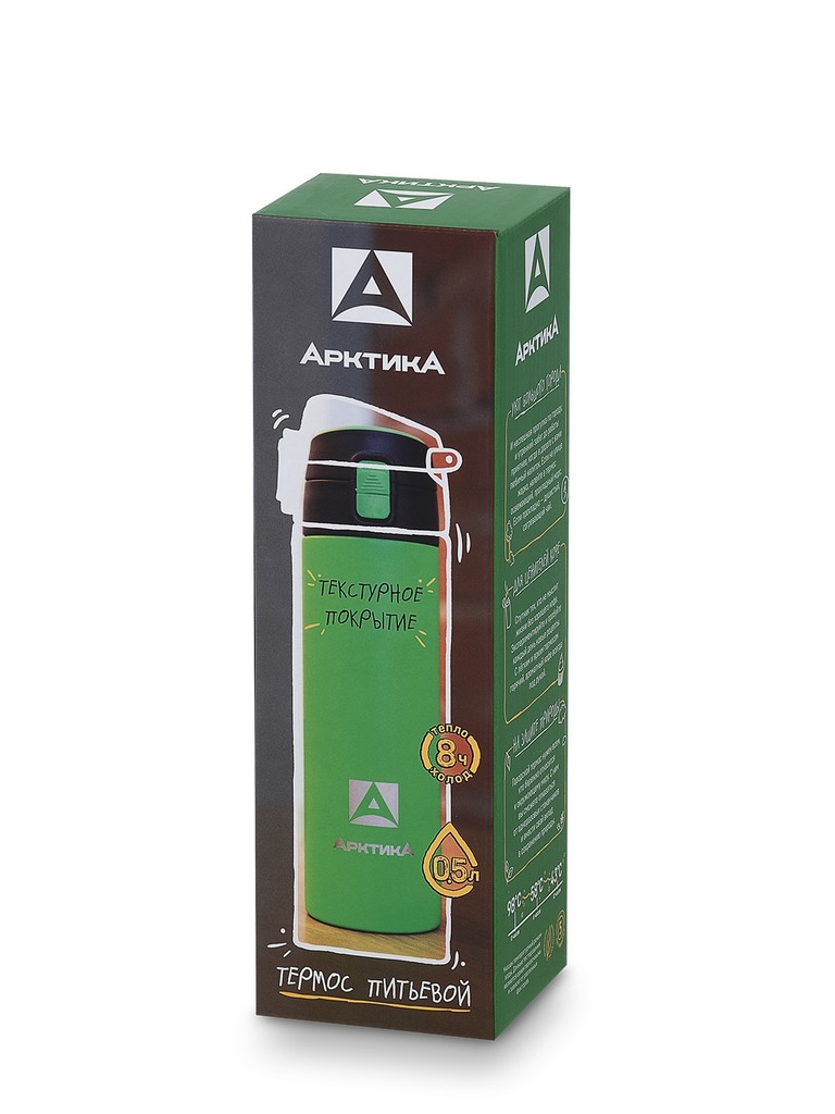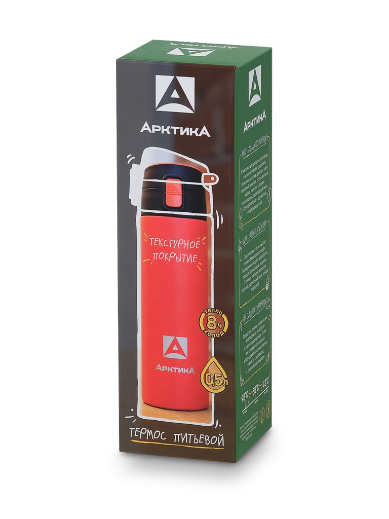 Крышка-поилка с утолщенной силиконовой прокладкой, кнопка с фиксатором для надежной защиты от проливания. Этот питьевой термос с минималистичным дизайном и высокой степенью термоизоляции будет везде к... Показать описание месту – и на деловой встрече, и на тренировке в зале. Если вы из тех, кто любит все успевать, то без этого городского термоса вам не обойтись. Один из самых компактных в линейке наших питьевых термосов, он легко поместится как в дамской сумочке, так и в подстаканнике автомобиля, при этом кнопка-фиксатор на крышке не позволит пролиться ни капли напитка мимо. Удобно открывать даже одной рукой, так что можно пить на ходу, не теряя ни минуты. Крышка полностью закрывает питьевую систему от попадания грязи и сора, что по достоинству смогут оценить спортсмены и велосипедисты. Сохраняет тепло или холод напитка долгое время. Выполнен из долговечной пищевой нержавеющей стали. Термос этой серии предназначен для современных и активных городских жителей. Это самый компактный и легкий термос в ассортименте Арктика, а его габариты позволяют разместиться в кармане, сумочке, рюкзаке и подстаканнике автомобиля. Верхняя часть термоса выполнена в виде удобной поилки, а это значит, что использовать термос можно прямо на ходу одной рукой. Кнопка с фиксатором надежно защищает горлышко изделия от проливания. При этом этот максимально облегченный термос может гордиться и своими теплоизоляционными свойствами. Благодаря утолщенной силиконовой прокладке данная модель уверено сохраняет тепло и холод. Выбрать себе надежного спутника для приключений в городских джунглях можно из пяти трендовых цветов этого сезона! Высота: 22,5 см. Вес(кг): 0,23; Материал: пищевая нержавеющая сталь: 18/8; Ширина горлышка (мм): 48; Ширина донышка (мм): 66; Держит тепло/холод (ч): 8; Объем (мл) 500 л.
