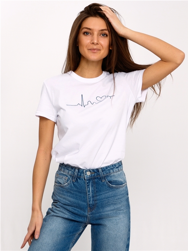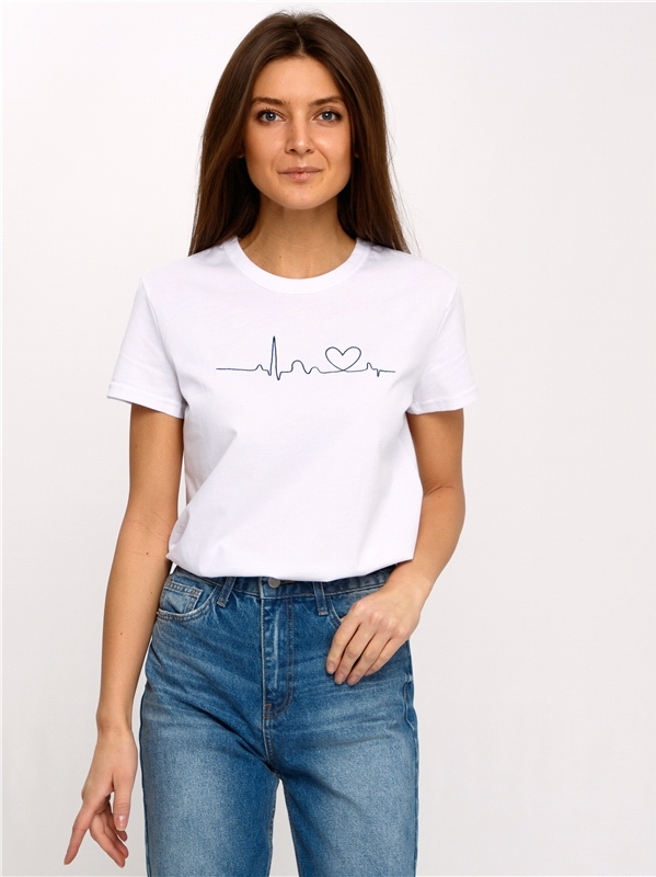 белый/Кардиограмма с сердцем вышивка Раздел: