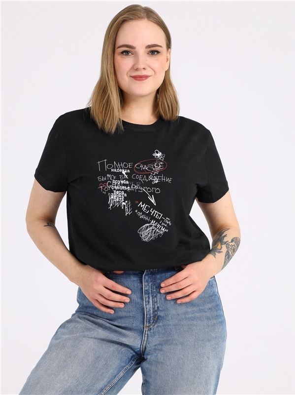 Состав: кулир / хлопок 100%. Футболка выполнена из кулира - легкого хлопкового полотна. Изделие свободного покроя с короткими рукавами и округлым вырезом горловины, украшено оригинальной вышивкой. Ухо... Показать описаниед: только машинная стирка (руками не стирать!) при температуре 40 градусов, без предварительного замачивания. Изделия с печатью и декором перед стиркой необходимо вывернуть на изнаночную сторону.