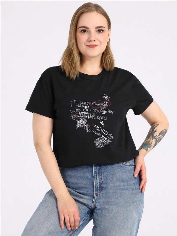 Состав: кулир / хлопок 100%. Футболка выполнена из кулира - легкого хлопкового полотна. Изделие свободного покроя с короткими рукавами и округлым вырезом горловины. Уход: только машинная стирка (рукам... Показать описаниеи не стирать!) при температуре 40 градусов, без предварительного замачивания. Изделия с печатью и декором перед стиркой необходимо вывернуть на изнаночную сторону.