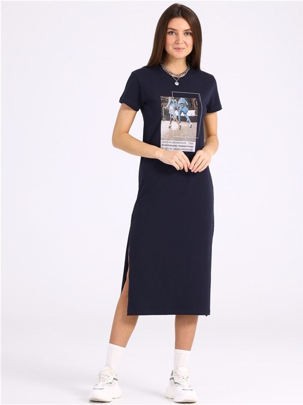 Состав: кулир с лайкрой / хлопок 92% + лайкра 8%. Стильное платье выполнено из легкого хлопкового полотна с лайкрой. Изделие с короткими рукавами и разрезами, украшено дизайнерским принтом. Отличный в... Показать описаниеариант для летней прогулки! Уход: только машинная стирка (руками не стирать!) при температуре 40 градусов, без предварительного замачивания. Изделия с печатью и декором перед стиркой необходимо вывернуть на изнаночную сторону.