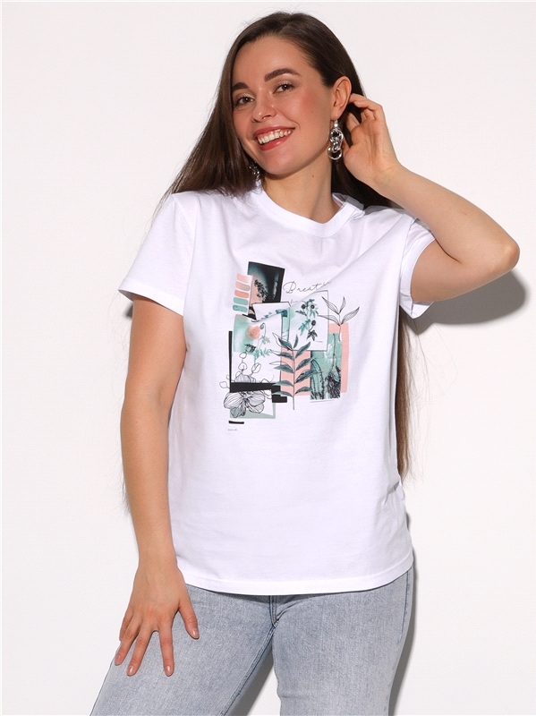 Состав: кулир / хлопок 100%. Футболка выполнена из легкого хлопкового полотна. Изделие свободного покроя с короткими рукавами и округлым вырезом горловины, украшено дизайнерским принтом. Уход: только ... Показать описаниемашинная стирка (руками не стирать!) при температуре 40 градусов, без предварительного замачивания. Изделия с печатью перед стиркой необходимо вывернуть на изнаночную сторону.