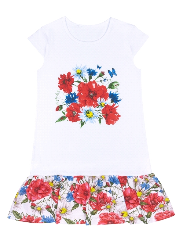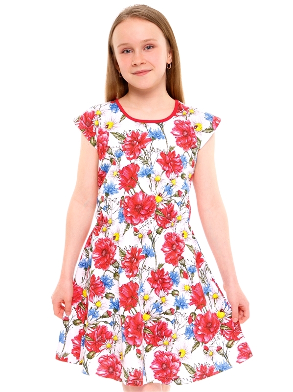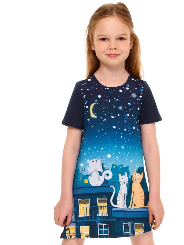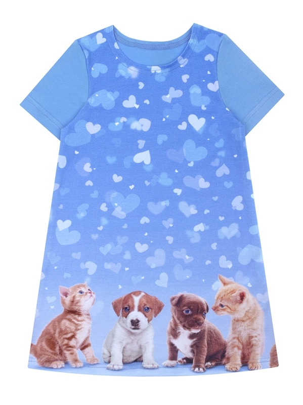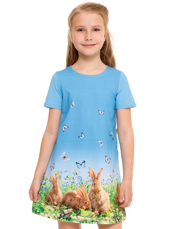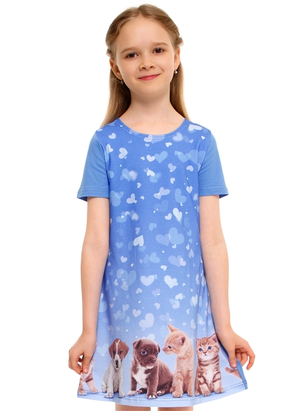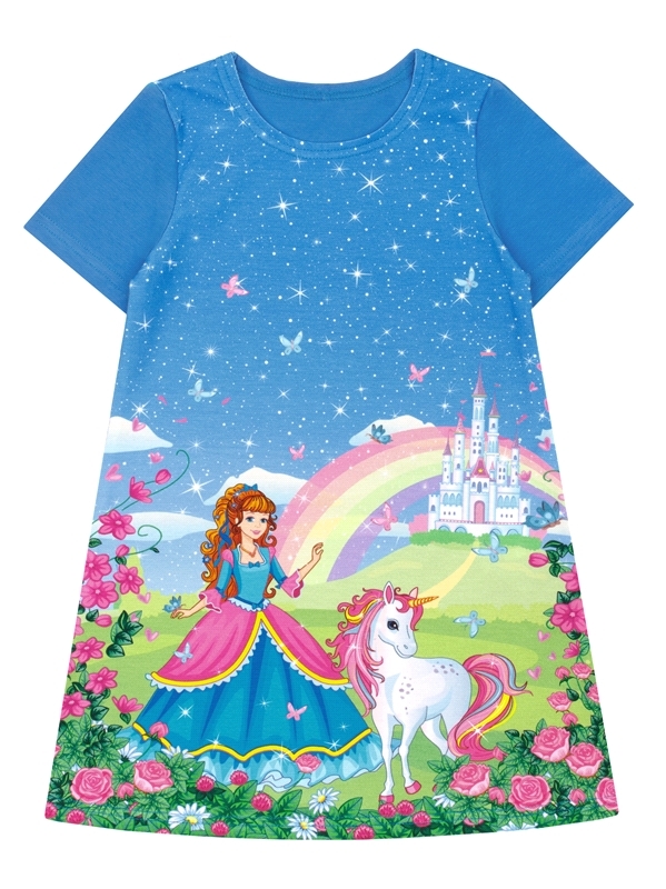 Состав: кулир с лайкрой / хлопок 92% + лайкра 8%. Платье для девочки выполнено из легкого хлопкового полотна с лайкрой. Изделие с короткими рукавами, украшено яркой печатью. Отличный вариант на каждый... Показать описание день! Уход: только машинная стирка (руками не стирать!) при температуре 40 градусов, без предварительного замачивания. Изделия с печатью и декором перед стиркой необходимо вывернуть на изнаночную сторону.