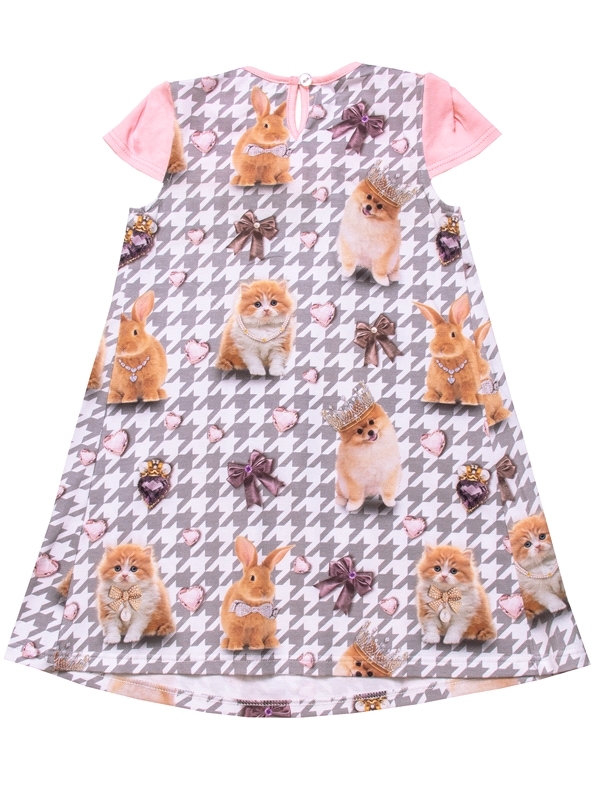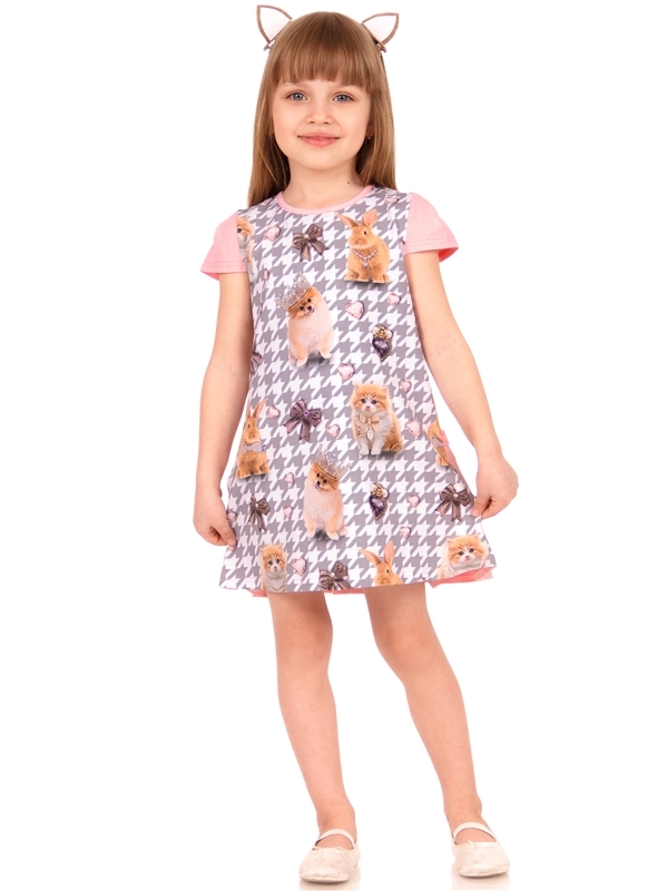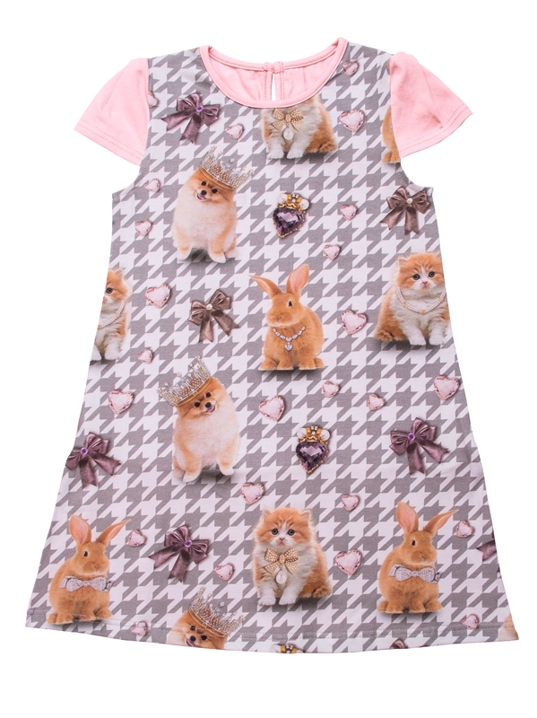 Состав: кулир с лайкрой / хлопок 68% + ПЭ 24% + лайкра 8%. Платье для девочки выполнено из кулира - тонкого хлопкового полотна с лайкрой. Изделие с короткими рукавами, на кокетке. Веселый принт и наши... Показать описаниевные элементы имитируют мордочку зверушки. Отличный наряд для маленьких принцесс! Уход: только машинная стирка (руками не стирать!) при температуре 40 градусов, без предварительного замачивания. Изделия с печатью и декором перед стиркой необходимо вывернуть на изнаночную сторону.