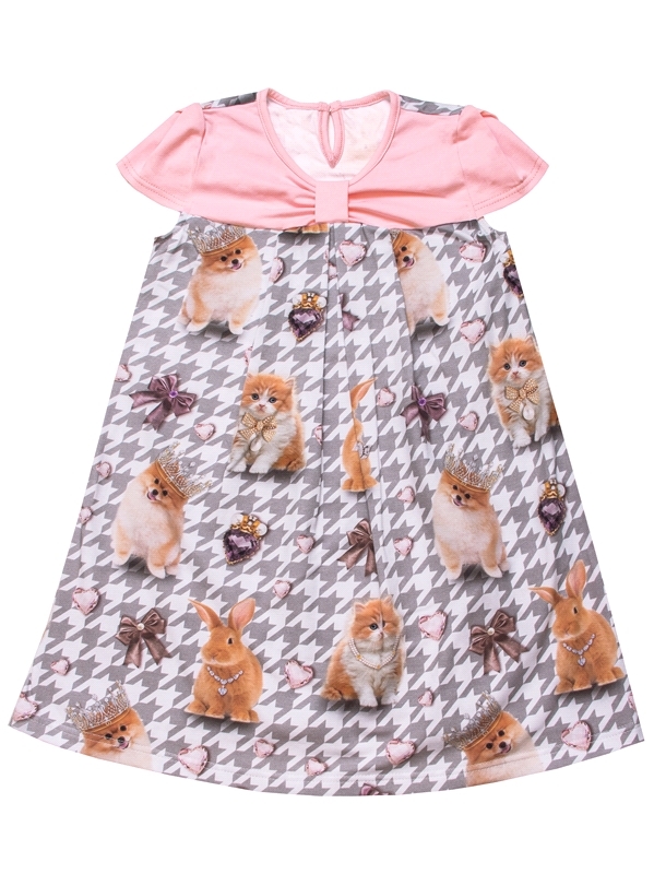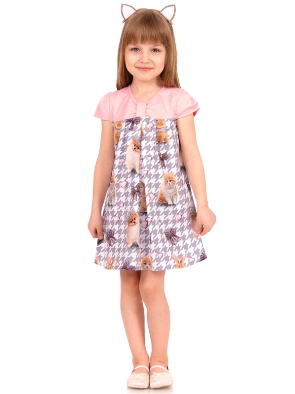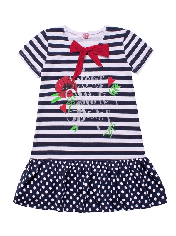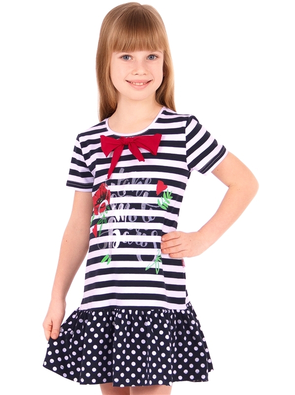 Состав: кулир с лайкрой / хлопок 92% + лайкра 8%. Платье для девочки выполнено из легкого хлопкового полотна с лайкрой. Изделие с короткими рукавами, украшено бантом и стильным дизайнерским принтом. О... Показать описаниетличный вариант для летнего дня! Уход: только машинная стирка (руками не стирать!) при температуре 40 градусов, без предварительного замачивания. Изделия с печатью и декором перед стиркой необходимо вывернуть на изнаночную сторону.