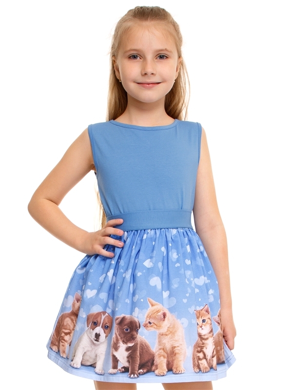 Состав: кулир / хлопок 100%. Платье для девочки выполнено из тонкого хлопкового полотна. Изделие без рукавов, с пышной юбкой, украшенной яркой набивкой. Отличный наряд для маленьких принцесс! Уход: то... Показать описаниелько машинная стирка (руками не стирать!) при температуре 40 градусов, без предварительного замачивания.