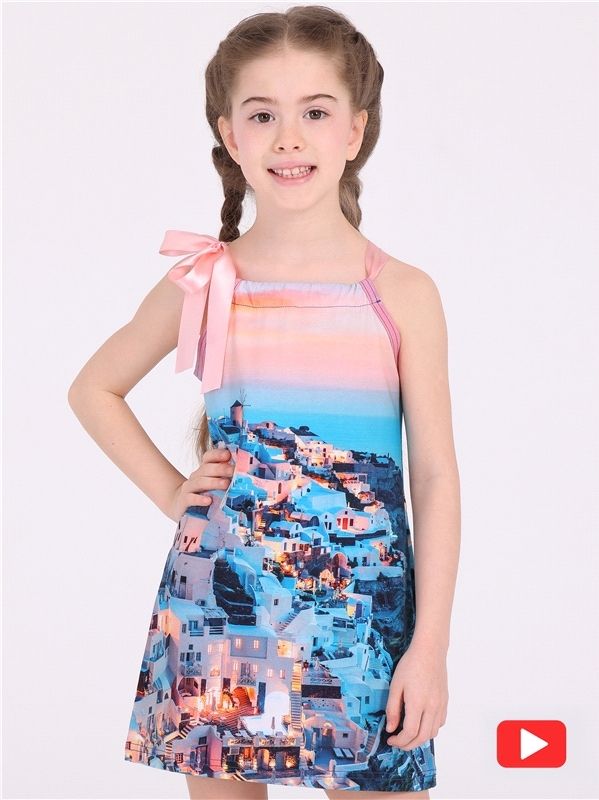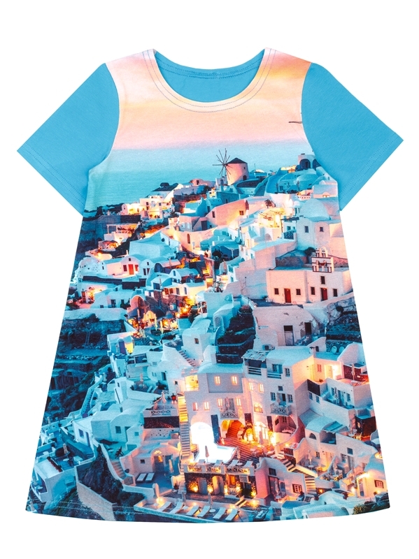 Состав: кулир / хлопок 100%. Платье для девочки выполнено из легкого хлопкового полотна. Изделие с короткими рукавами, декорировано дизайнерской набивкой. Уход: только машинная стирка (руками не стира... Показать описаниеть!) при температуре 40 градусов, без предварительного замачивания.