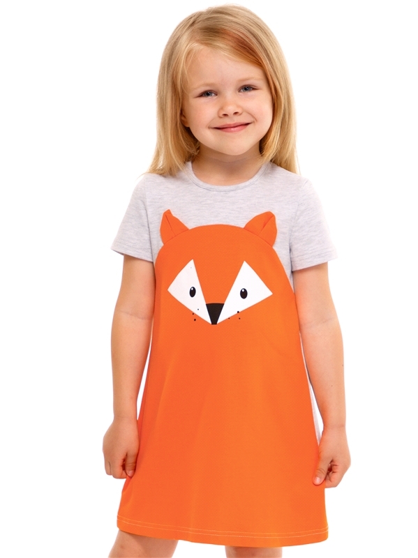Состав: кулир с лайкрой / хлопок 68% + ПЭ 24% + лайкра 8%. Платье для девочки выполнено из кулира - легкого хлопкового полотна с лайкрой. Изделие с короткими рукавами, на кокетке. Веселый принт и наши... Показать описаниевные элементы имитируют мордочку лисички. Отличный наряд для маленьких принцесс! Уход: только машинная стирка (руками не стирать!) при температуре 40 градусов, без предварительного замачивания. Изделия с печатью и декором перед стиркой необходимо вывернуть на изнаночную сторону.
