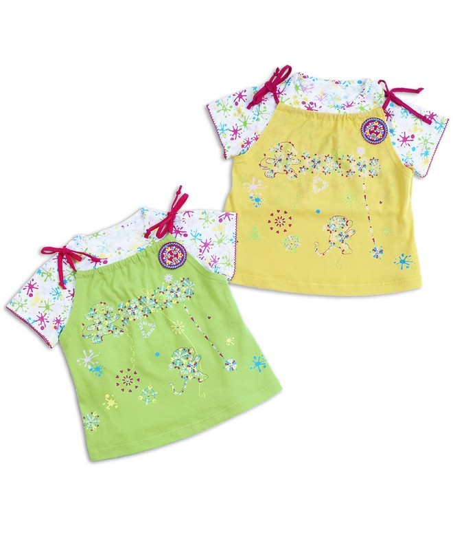 Состав: кулир / хлопок 100%. Симпатичный комплект, состоящий из двух джемперов, выполнен из мягкого полотна. Джемпера с короткими рукавами декорированы дизайнерским принтом, нашивкой и яркими завязочк... Показать описаниеами. Оригинальный дизайн и модная расцветка делают этот комплект незаменимым предметом детского гардероба. Рекомендуется машинная стирка при 40 градусах без предварительного замачивания.