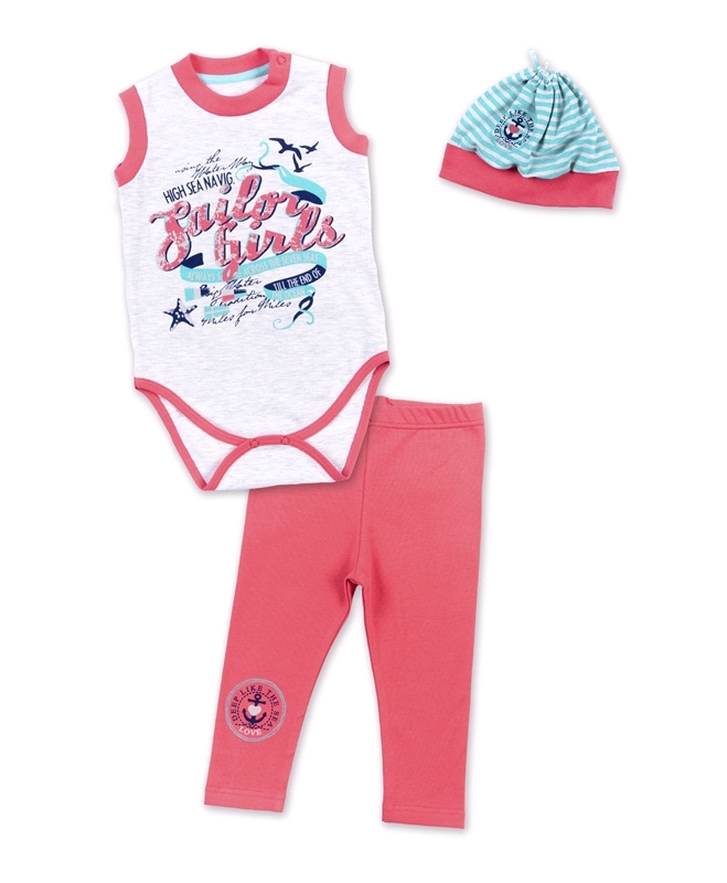 Состав: кулир / хлопок 95% + лайкра 5%, хлопок 68% + ПЭ 24% + лайкра 8%. Стильный комплект, состоящий из боди, лосин и головного убора, выполнен из мягкого хлопка. Приятный на ощупь, не сковывает движ... Показать описаниеения, обеспечивая наибольший комфорт. Боди без рукавов, обрамлен контрастной окантовкой, застегивается на кнопки, украшен дизайнерской набивкой и морским принтом . Лосины имеют эластичный пояс и штучную печать. Оригинальная шапочка со штучной печатью,подчеркивающая идею коллекции, прекрасно завершит образ. Отличный вариант для маленькой модницы! Рекомендуется машинная стирка при 40 градусах без предварительного замачивания.