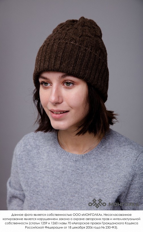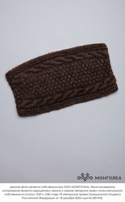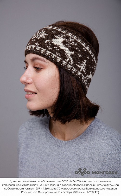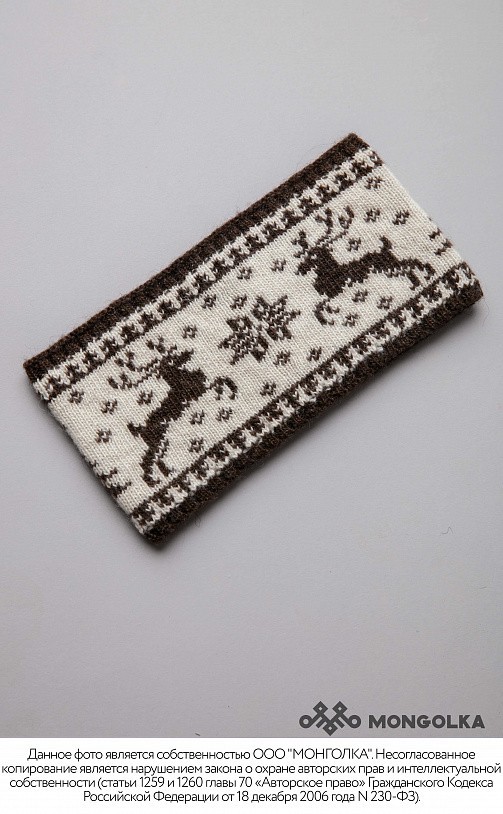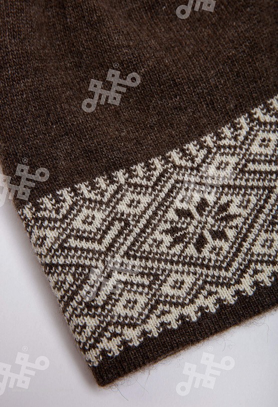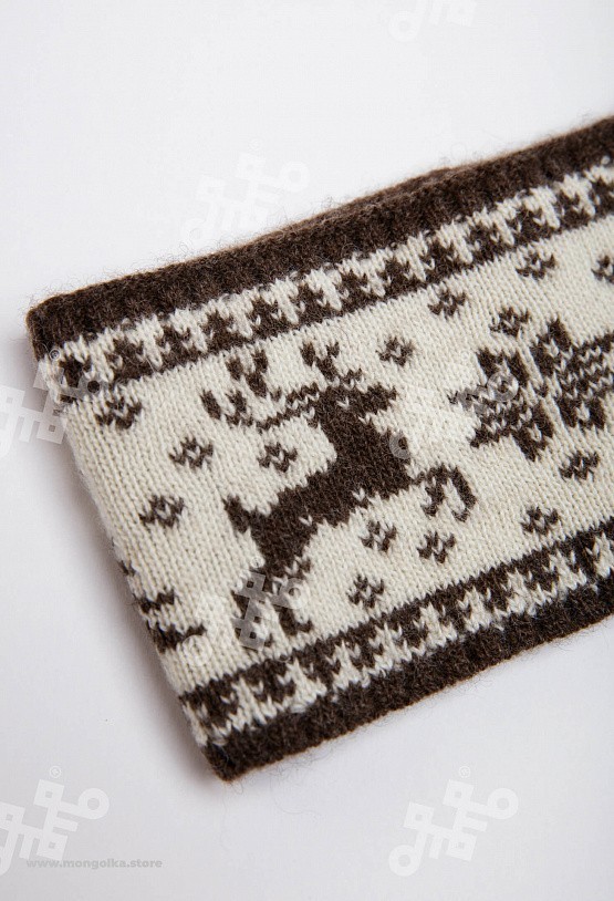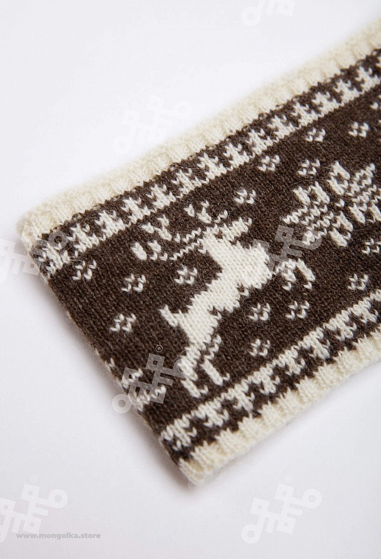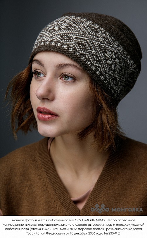 Шапка из монгольской овечьей шерсти сохраняет тепло в любые морозы, но для выполнения этой функции следует обращать внимание на состав изделия. Теплая шапка, в составе которой 100% шерсть монгольской ... Показать описаниеовцы, отводит лишнюю влагу и подарит чувство сухости и комфорта в холодную погоду. Шерстяная шапка дополнит любой образ и может стать согревающим подарком для близкого человека. В нашем ассортименте вы найдете еще больше товаров из натуральной шерсти, доставленных напрямую из Монголии. Производитель: Монголия, TOD Состав: 100% шерсть монгольской овцы Цвет: шоколадный с орнаментом Размер: ОГ 56-58 см. Ширина: 26 см. Двойная вязка Можно носить с подворотом
