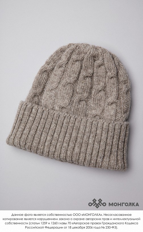 Шапка из монгольской овечьей шерсти сохраняет тепло в любые морозы, но для выполнения этой функции следует обращать внимание на состав изделия. Теплая шапка, в составе которой 100% шерсть монгольской ... Показать описаниеовцы, отводит лишнюю влагу и подарит чувство сухости и комфорта в холодную погоду. Модель шерстяной шапки универсальна и подойдет как для мужчин, так и для женщин, а также может стать согревающим подарком для близкого человека. Однотонная шапка базового цвета станет стильным дополнением любого образа. В нашем ассортименте вы найдете еще больше товаров из натуральной шерсти, доставленных напрямую из Монголии. Производитель: Монголия, TOD Состав: 100% шерсть монгольской овцы Цвет: бежевый Размер: ОГ 56-58 см. Ширина: 24 см. Высота: 28 см. Толстая двойная вязка Можно носить с подворотом и без