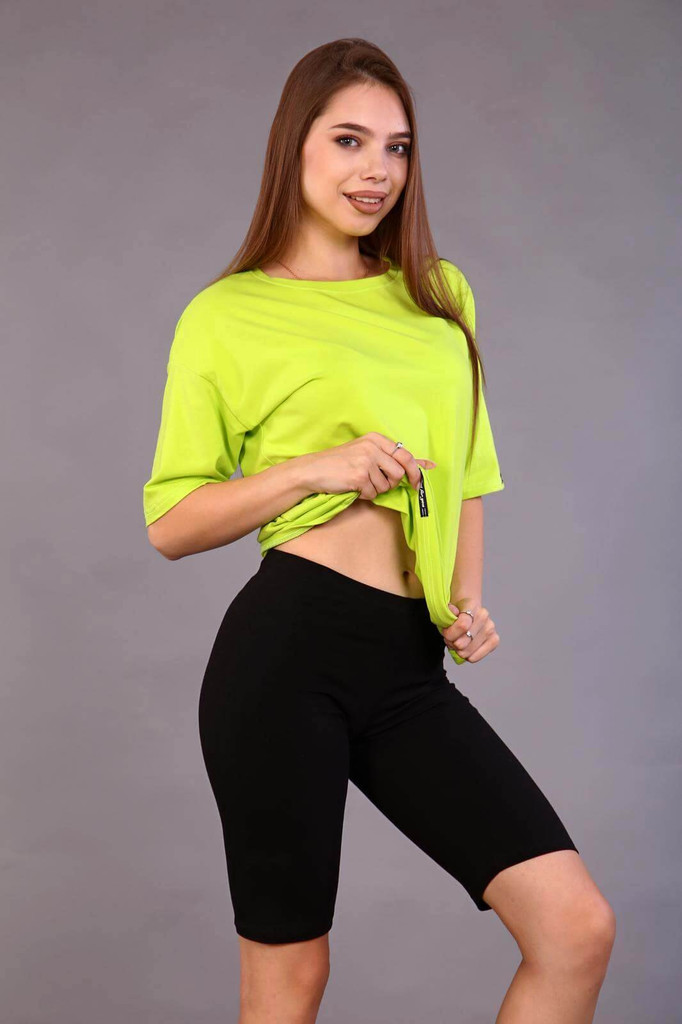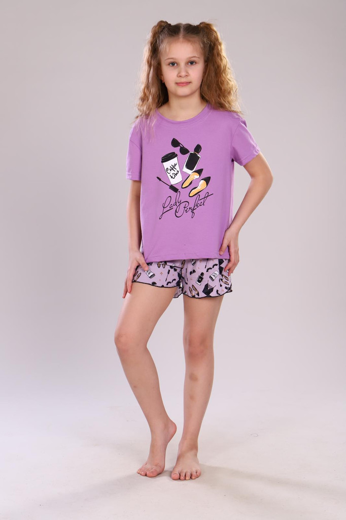 Пижама "Аня". Трикотаж - Кулирка. Хлопок 100%. Размеры 30-40. Размерная сетка №2. Пижама состоит из футболки оверсайз с круглым воротом и печатью на полочке, и шорт свободного силуэта.