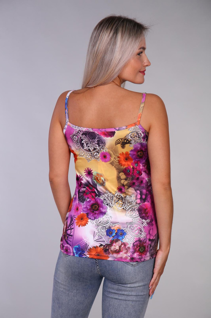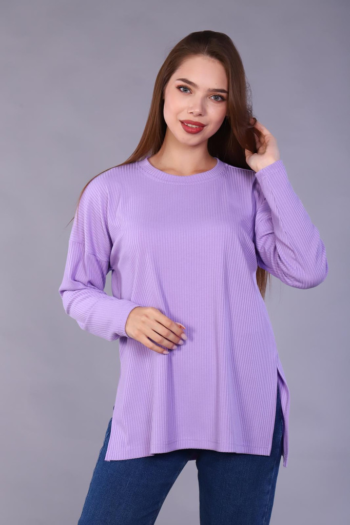 Костюм "Анабет". Трикотаж - Кулирка. Хлопок 100%. Размеры 48 - 58. Комплект состоит из бридж лилового цвета и туники цвета лаванды. Брижди плотного облегания, без карман с цельнокроеным поясом. Туника... Показать описание полуприлегающего силуэта, линия плеч спущена. Горловина круглой формы с капелькой. На полочке цветочный принт. Горловина и пройма обработаны окантовкой контрастного цвета.