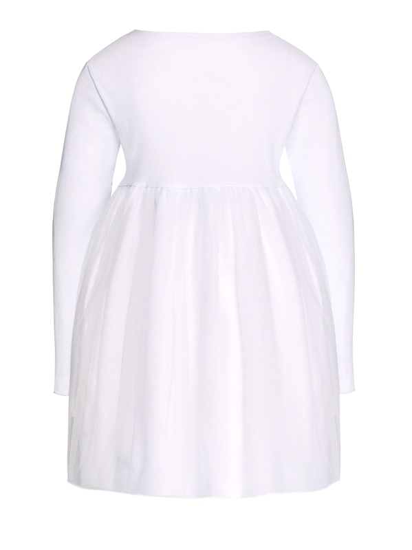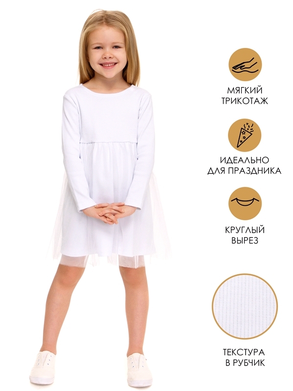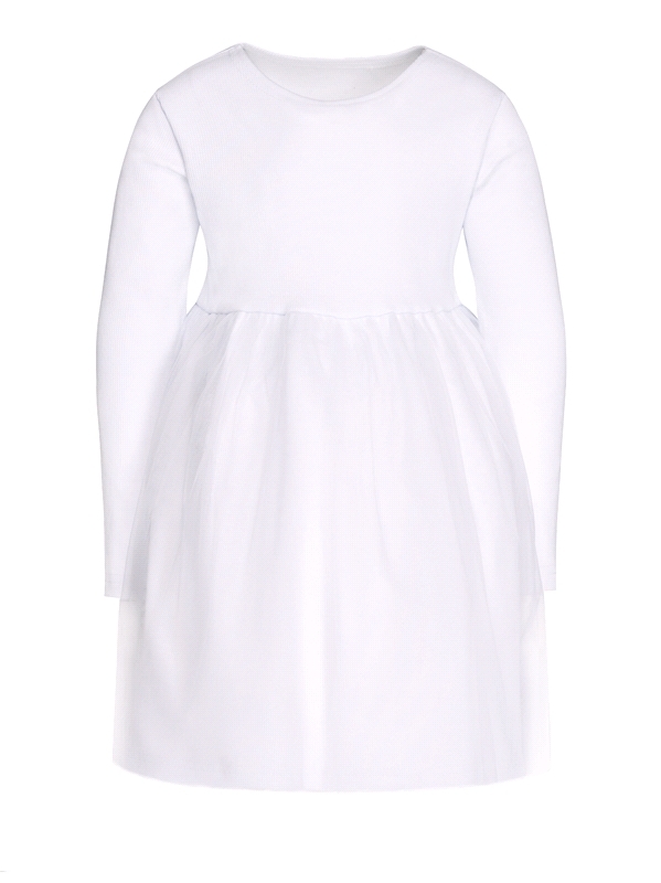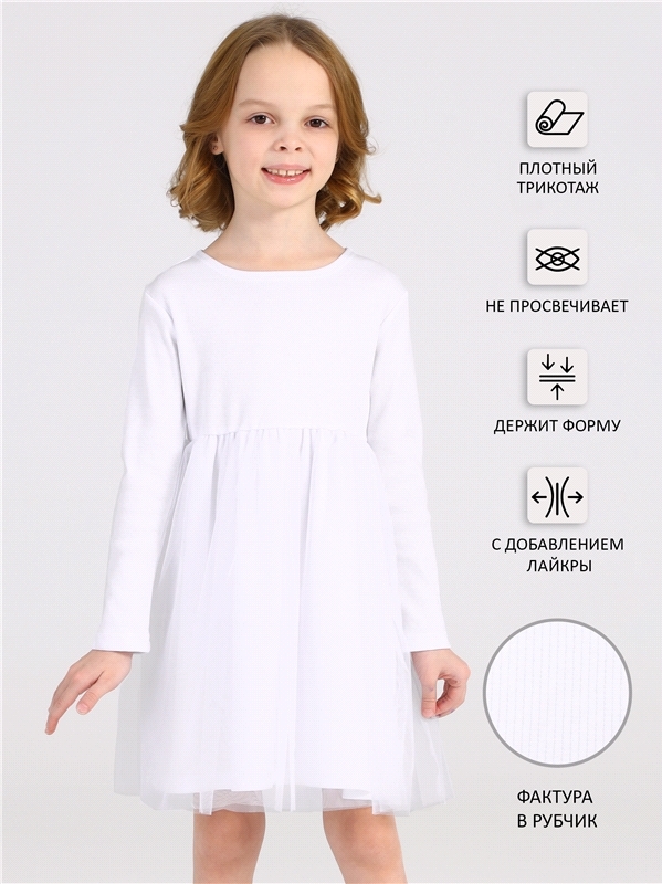 Состав: ластик / хлопок 95% + лайкра 5%. Платье для девочки выполнено из мягкого эластичного хлопкового полотна в рубчик. Изделие полуприлегающего силуэта, с округлым вырезом горловины и длинными рука... Показать описаниевами. Юбка полусолнце продублирована мягкой сеточкой. Отличный выбор для праздника для маленьких принцесс! Уход: только деликатная стирка при температуре 40 градусов, без предварительного замачивания.