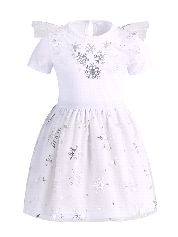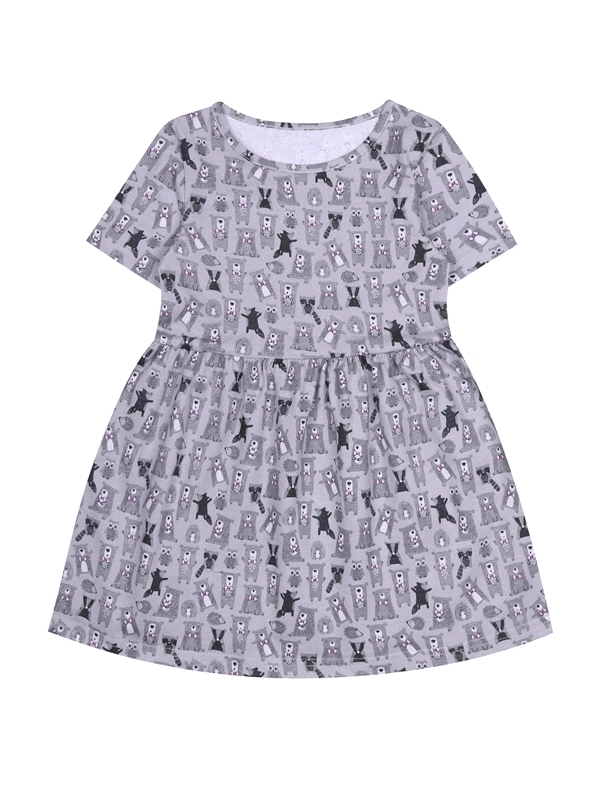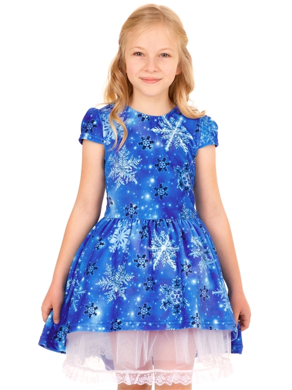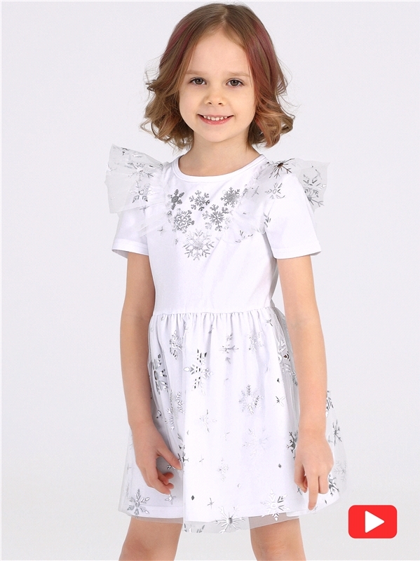 Состав: кулир с лайкрой / хлопок 92% + лайкра 8%. Стильное платье из тонкого хлопкового полотна с лайкрой. Изделие с короткими рукавами, юбка дополнена воздушной сеточкой, украшено оборками и дизайнер... Показать описаниеской принтом. Отличный вариант для праздника! Уход: только машинная стирка (руками не стирать!) при температуре 40 градусов, без предварительного замачивания. Изделия с печатью и декором перед стиркой необходимо вывернуть на изнаночную сторону.