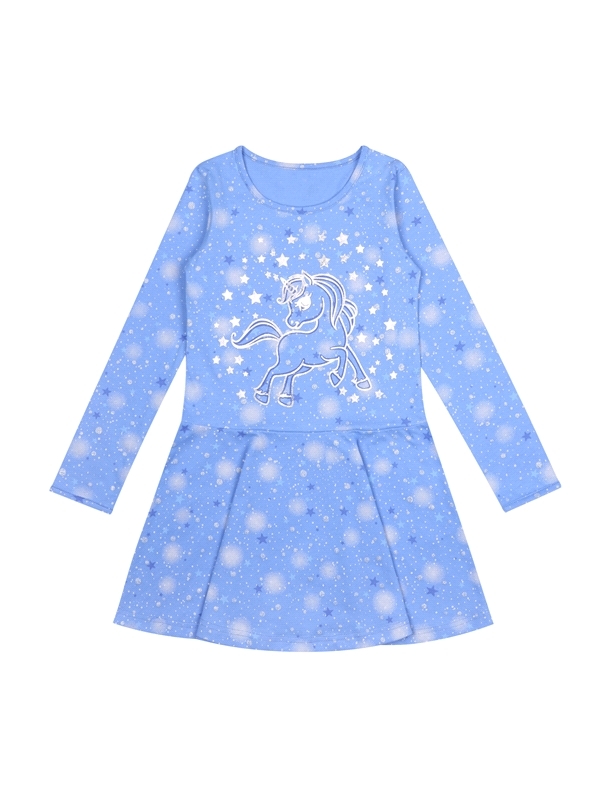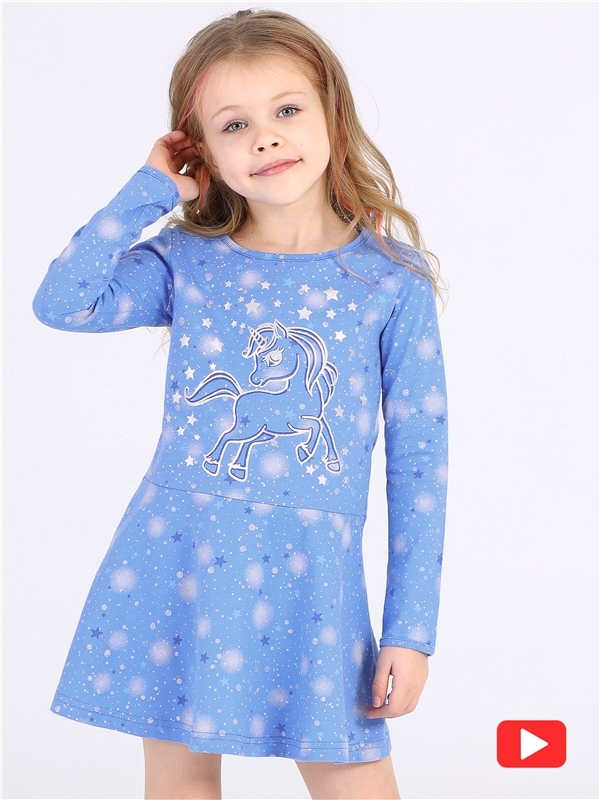 Состав: кулир / хлопок 100%. Платье для девочки выполнено из кулира - легкого хлопкового полотна с лайкрой. Изделие с длинными рукавами, украшено принтом и глиттером. Платье станет отличным подарком д... Показать описаниеля маленькой модницы! Уход: деликатная стирка при температуре 40 градусов, без предварительного замачивания. Изделия с печатью и декором перед стиркой необходимо вывернуть на изнаночную сторону.