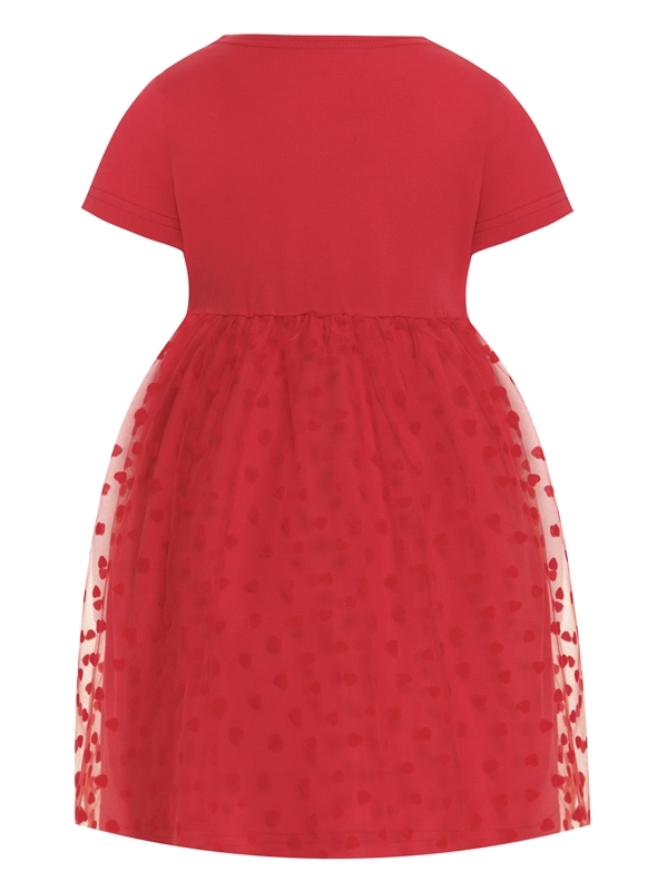 Состав: кулир с лайкрой / хлопок 92% + лайкра 8%. Стильное платье из тонкого хлопкового полотна с лайкрой. Изделие с короткими рукавами, юбка дополнена воздушной сеточкой, украшено оборками и дизайнер... Показать описаниеской принтом. Отличный вариант для праздника! Уход: только машинная стирка (руками не стирать!) при температуре 40 градусов, без предварительного замачивания. Изделия с печатью и декором перед стиркой необходимо вывернуть на изнаночную сторону.