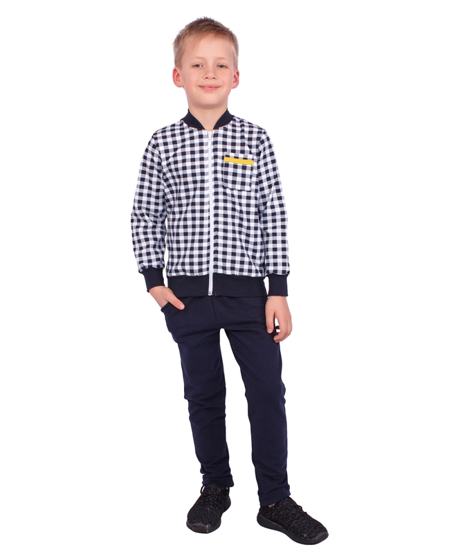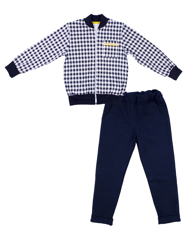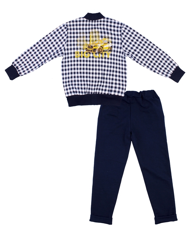 Состав: футер / хлопок 95% + лайкра 5%. Комплект для мальчика из куртки и брюк выполнен из теплого хлопкового полотна. Куртка застегивается на молнию и украшена дизайнерской печатью. Зауженные брюки н... Показать описаниеа эластичном поясе со втачными карманами и подгибом. Уход: только машинная стирка (руками не стирать!) при температуре 40 градусов, без предварительного замачивания. Изделия с печатью и декором перед стиркой необходимо вывернуть на изнаночную сторону.