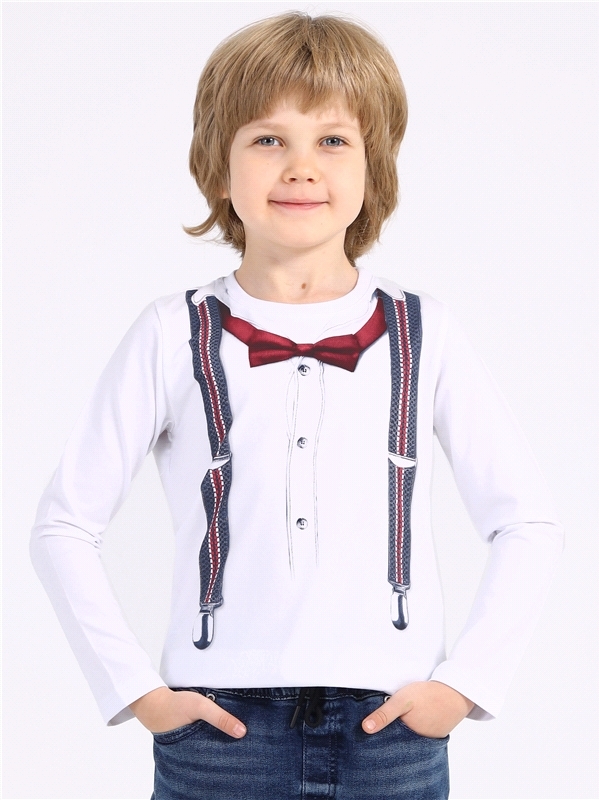 Состав: кулир с лайкрой / хлопок 92% + лайкра 8%. Лонгслив для мальчика выполнен из кулира - тонкого хлопкового полотна с лайкрой. Изделие с длинными рукавами и украшено стильным принтом. Отличный вар... Показать описаниеиант для праздничного вечера! Уход: только машинная стирка (руками не стирать!) при температуре 40 градусов, без предварительного замачивания. Изделия с печатью и декором перед стиркой необходимо вывернуть на изнаночную сторону.