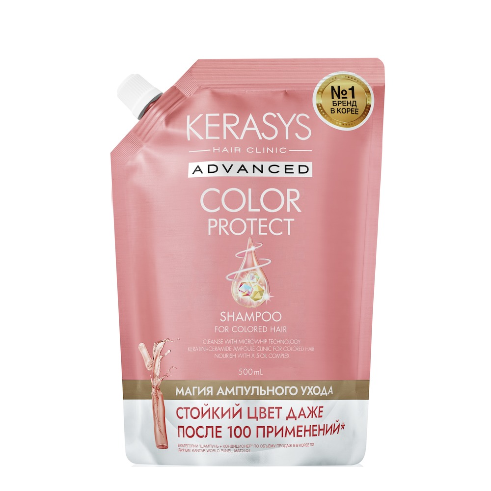 KeraSys ADVANCED Шампунь д/волос ЗАПАСКА ампульный защита цвета с Церамид.и Кератин.ампулами 500мл