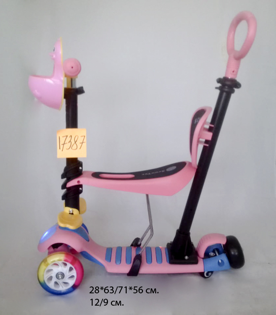 Самокат арт. 17387F" 3-х колесный, 5 в 1, свет. муз, в кор." Вопросы по товару