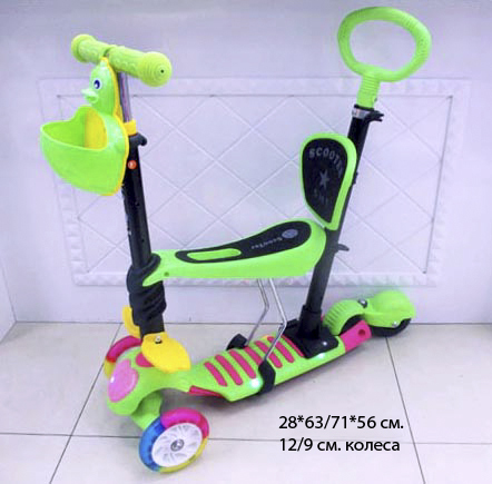 Самокат арт. 17387F" 3-х колесный, 5 в 1, свет. муз, в кор."