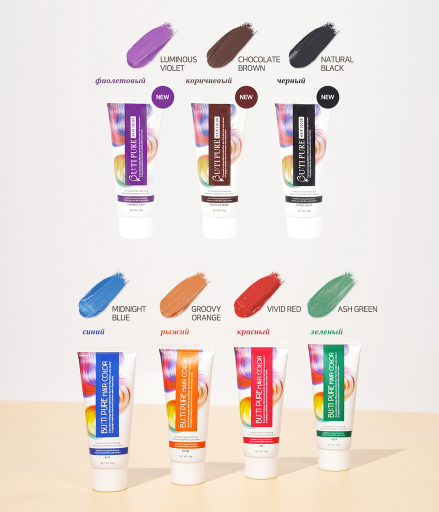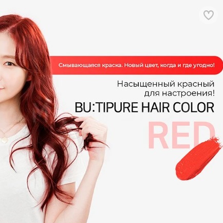 Изготовитель: PLAND Co.LTD., 1-601 ACE Dongbaek Tower, 16-4 16beon-gil , Dongbaekjungang-ro, Giheung-gu, Yongin-si, Gyeonggi-do , Корея,Республика. Временная краска для волос Bu:ti pure hair color, до... Показать описаниестаточно нанести на волосы краску для волос и высушить их. Простой в применении однодневный мейкап для волос, который позволяет получить желаемый оттенок на целый день, прийти домой и просто смыть его шампунем, чтобы вернуться к прежнему цвету. В состав краски входят только безопасные ингредиенты, используемые в декоративной косметике. Способ применения: 1.Выдавите небольшое количество (около 10г) средства на ладонь и нанесите на волосы с помощью рук и расчески. 2.Высушите волосы после окрашивания.