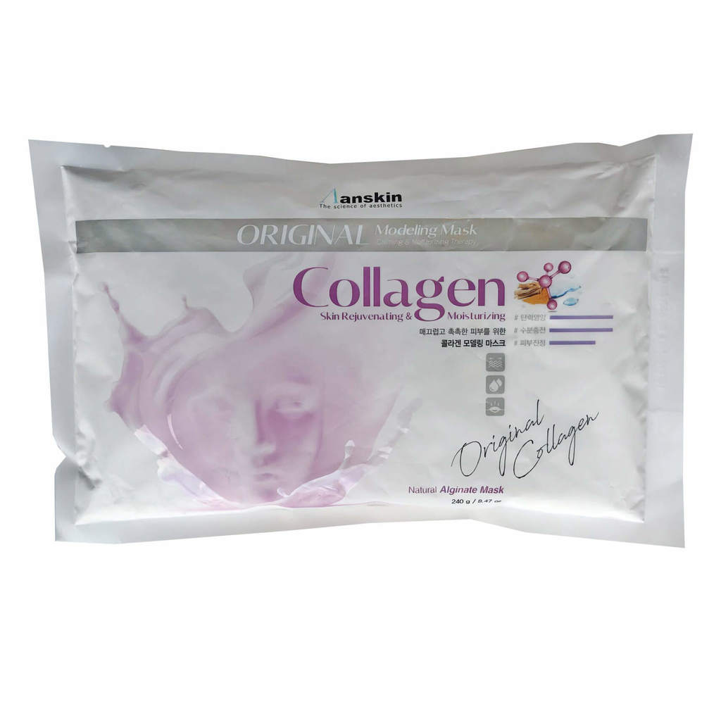 Укрепляющая альгинатная маска для лица с коллагеном ANSKIN ORIGINAL COLLAGEN MODELING MASK Гидролизованный коллаген и гиалуроновая кислота предотвращают окисление кожи и защищают овал лица от провисан... Показать описаниеия, противостоят признаков старения кожи, сохраняют эластичность кожи. Положить порошок мерной чашкой и воду (или активатор) в миску (100 мл порошка 80 мл воды), перемешайте до однородной массы при помощи шпателя, нанесите маску слоем 3-5 мм на очищенную кожу лица на 20-25 минут до застывания. Удалить её одним пластом, от подбородка ко лбу. За 2-3 минуты до наложения маски рекомендуется наносить биоактивные сыворотки, кремы или гели.