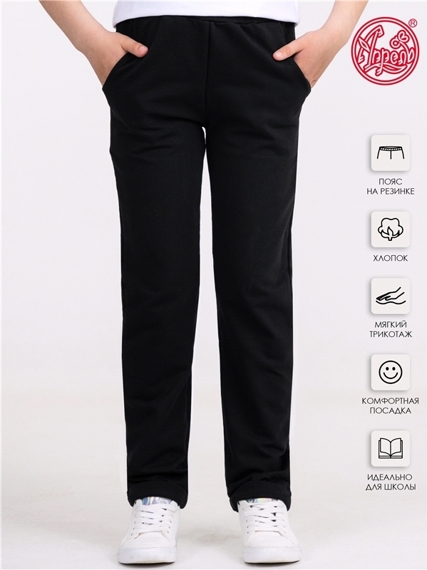 Состав: футер / хлопок 68% + ПЭ 27% + лайкра 5%. Брюки для мальчика выполнены из футера - мягкого плотного хлопкового полотна с лайкрой. Изделие на эластичном поясе, имеет удобные карманы и декоративн... Показать описаниеые отстрочки-стрелки. Отличный вариант для школы! Уход: только машинная стирка (руками не стирать!) при температуре 40 градусов, без предварительного замачивания.